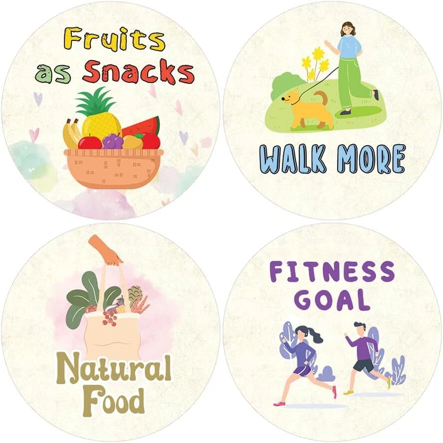 16 UNIQUE DESIGNS INSPIRING STICKERS FOR YOUR DIY PERSONALIZED DECORATIONS - Creanoso Healthy Diet Stickers (20-Sheets). These colorful and uniquely inspiring round shaped stickers are the best tool for DIY decoration and personalization of your belongings. GREAT STOCKING STUFFERS , TEACHING SUPPLEMENTARY MATERIALS, AND GIVEAWAY - Great stocking stuffers gifts for Boys, Girls, Teens, Kids. A perfect design to give during classroom school activities, home schooling,birthdays, anniversaries, family day, and any other special occasions. MADE WITH DURABLE AND WATERPROOF MATERIALS - There is a lamination or coating to make the stickers high water resistant, and WILL NOT not fade from the water. The stickers can stick it anywhere you like, and it sticks there and lasts a long time. A COLORFUL AND DECOR STICKER DECAL - Each sheet with 16 individual round stickers. There are 20 sheets , with a total of 320 pcs of stickers. TICKER SIZE: 1.5 INCHES IN DIAMETER Healthy Diet Stickers (20 Sets X 16 Designs) COLORFUL AND COLLECTION OF TEXT STICKERS • Well designed. • Very encouraging. • Self-adhesive. Healthy Diet Stickers (20 Sets X 16 Designs) are super fun to collect; you can't have just one! That's why you will find a selection of stickers right here. Each package comes with different stickers in a variety of designs. Stick them here, stick them there, stick them everywhere! Everyone will love these self-adhesive stickers. These colorful stickers are perfect for any adults and these come with very inspiring messages and bright pictures. A fun, inexpensive way to add a decorative, notes, and stationery. Delight yourself with uplifting messages designs that are very encouraging. Healthy Diet Stickers (20 Sets X 16 Designs) perfect for giveaways, behavior incentives, prizes! These stickers are acid-free, nontoxic, and safe for use on photos. This product comes with a 60 days money back guarantee. You can return them to us for a full refund.