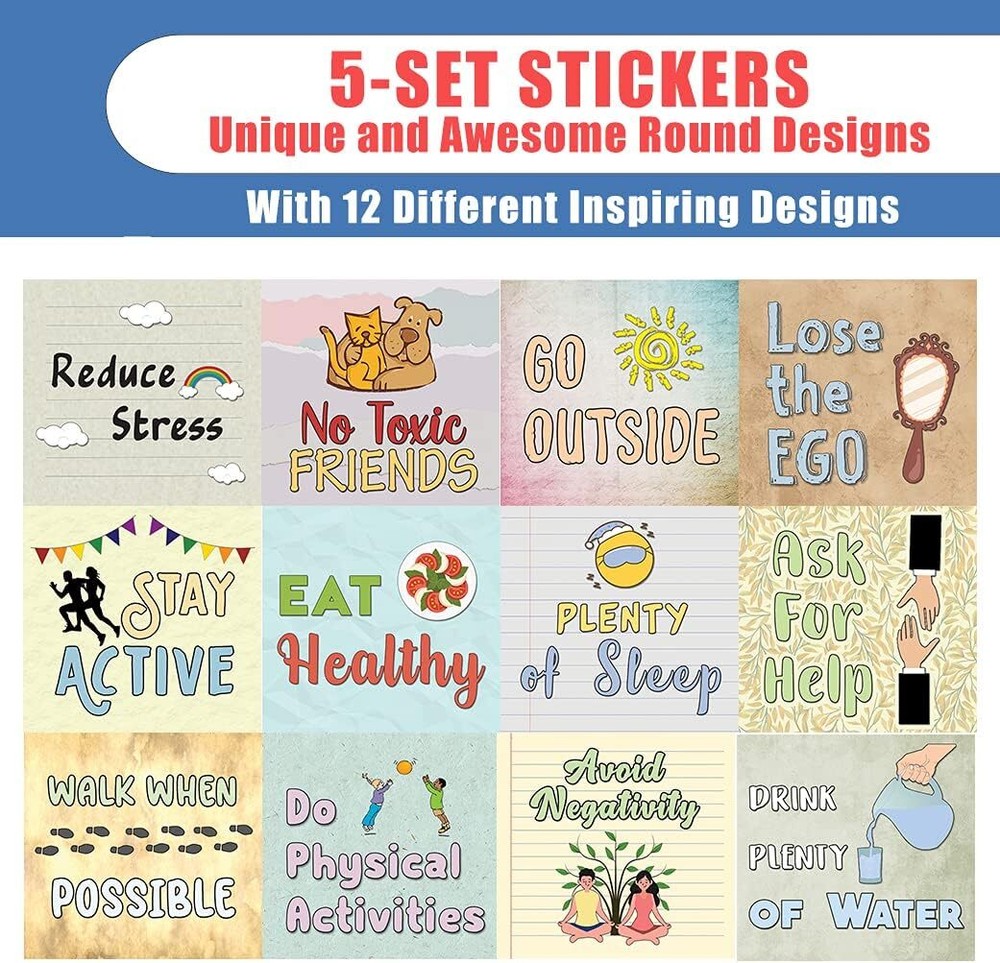 12 UNIQUE DESIGNS INSPIRING STICKERS FOR YOUR DIY PERSONALIZED DECORATIONS - Creanoso Healthy Lifestyle Reminders – 5 Sheet. These colorful and uniquely inspiring square shaped Creanoso Healthy Lifestyle Reminders are the best tool for DIY decoration and personalization of your belongings. WIDE APPLICATION ON ANY FLAT SURFACE - can be used on any flat surface as decoration and personalization of your belongings. These awesome stickers can be stuck on a laptop, notebook, water bottle, pencil box, lunch box, suitcase, hard hat & helmet, decal artworks , phone cover, bikes, bicycles, and many more. MADE WITH DURABLE AND WATERPROOF MATERIALS - There is a lamination or coating to make the stickers high water resistant, and WILL NOT fade from the water. The stickers can be stuck anywhere you like, and they stick there and last a long time. A LOT OF STICKERS FOR LOWER PRICE - Each sheet with 12 individual 2.1” x 2.0” square stickers. There are 5 sheets, with a total of 60 pcs of stickers. GREAT STOCKING STUFFERS, TEACHING SUPPLEMENTARY MATERIALS, AND GIVEAWAY - Great stocking stuffers gifts for Kids, Teens, Adults. A perfect design to give during classroom programs, homeschooling, birthdays, gatherings, family day, physical activities, and any other special occasions. Healthy Lifestyle Reminders Stickers (5 Sets X 12 Designs) COLORFUL AND COLLECTION OF TEXT STICKERS • Well designed. • Very encouraging. • Self-adhesive. Healthy Lifestyle Reminders (5 Sets X 12 Designs) are super fun to collect; you can't have just one! That's why you will find a selection of stickers right here. Each package comes with different stickers in a variety of designs. Stick them here, stick them there, stick them everywhere! Everyone will love these self-adhesive stickers. These colorful stickers are perfect for any adults and these come with very inspiring messages and bright pictures. A fun, inexpensive way to add a decorative, notes, and stationery. Delight yourself with uplifting messages designs that are very encouraging. Healthy Lifestyle Reminders (5 Sets X 12 Designs) perfect for giveaways, behavior incentives, prizes! These stickers are acid-free, nontoxic, and safe for use on photos. This product comes with a 60 days money back guarantee. You can return them to us for a full refund.