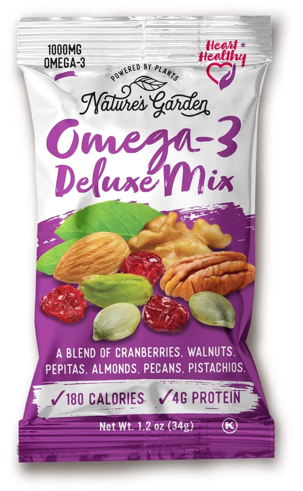 We've created a mouthwatering combination of premium nuts and deluxe nutritious fruits to offer a snack that is equal parts delicious, convenient, and healthy. Our Healthy Trail Mix comes straight from mother nature, helping your heart stay healthy and your body functioning at its best. Grab a bag and enjoy the delicious taste of Trail Mix Snack Packs without worrying about added artificial colors, additives, or preservatives. This is snacking that is functional. This is snacking done right! FOR EVERY DIET, ANYWHERE. Did someone say yummy for all? Each trail mix inside our Healthy Trail Mix Snack Packs are proudly vegan, dairy-free, and gluten-free. The convenient size makes these individual packs perfect for savvy snackers on the move. Whether you’re adventuring or at the office, or filling your child’s lunch box, these snacks are as functional as they are delicious. TOP SHELF INGREDIENTS. All Nature’s Garden products, including our Healthy Trail Mix Snack Packs are made with all natural ingredients. That means we take the finest quality nuts, berries, and fruit mother nature has to offer and create snacks that go beyond simply satisfying hunger. So rest assured, when you buy Nature’s Garden, you’re buying the absolute best. FREE FROM NASTIES. We’ve ditched the bad stuff and are committed to bringing you that good good. Each mix inside our Healthy Trail Mix Snack Pack is free from preservatives, trans fats, GMOs, artificial ingredients, artificial flavors, cholesterol, and sodium. Whew! Take a big exhale and chow down without second guessing. WALLET-FRIENDLY. How do you make a totally delicious, insanely nutritious, and crazy convenient snack even better? Buy in bulk and make it budget-friendly! Our Healthy Trail Mix Snack Packs come in a bundle of 24 individual packets featuring three of our best-selling trail mixes. The perfect way to indulge in a variety of yummy, for less. KICKSTART YOUR HEART. Each of the trail mixes inside our Healthy Trail Mix Snack Packs proudly wear the healthy heart banner. This means that you can munch guilt-free, knowing you’re treating your heart (and soul) to a snack with a greater purpose.