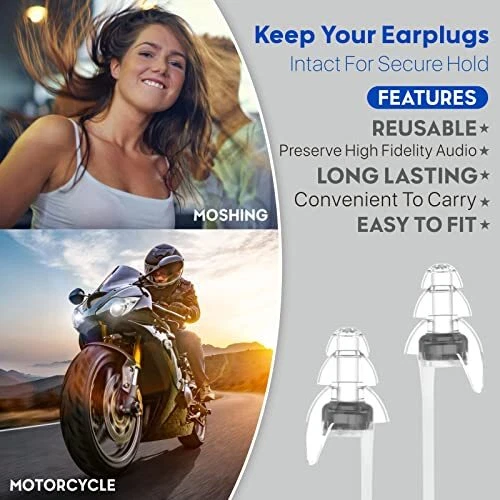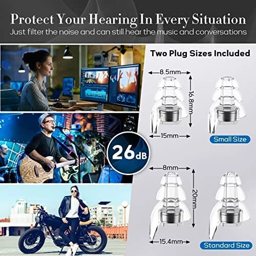 Home About Us Payments Shipping Returns Premium Mall AMAZING COLLECTION Choose your color: blue purple black gold blue&black gray green Hearprotek High Fidelity Concert Ear Plugs, Noise Reduction Music Earplugs, Hearing Protection for Musicians, Festival, DJ’s, Nightclub, Concerts, Drummers and Other Loud Events Hearprotek High Fidelity Concert Ear Plugs, Noise Reduction Music Earplugs, Hearing Protection for Musicians, Festival, DJ’s, Nightclub, Concerts, Drummers and Other Loud Events 30 Day Money Back Guarantee Family Run BUSINESS DELIVERY GUARANTEED 2 - 4 DAYS FOR ALL ORDERS 30 Day Money Back Guarantee Family Run BUSINESS DELIVERY GUARANTEED 2 - 4 DAYS FOR ALL ORDERS Product Features 【Preserve High Fidelity Audio】 Hearprotek Music ear plugs do an effective job of bringing down the overall volume, blocking background noises at a comfortable level while preserving the sound clarity and sharpness. You won't experience any muffling with these plugs as you would foam-based ones and you will be able to hear different sound frequencies and talk to people without having to worry of muffling. 【20db Noise Reduction】 Comes with 2 sets of 20db ear plugs in different sizes (small & standard), cutting up an impressive 20db's of sound volume which is a pretty good amount for a concert or band rehearsal, and you can always have your spare plug in case any plugs are fallen out unfortunately or missing. 【Designed For Comfort】 Made of high quality silicone material that provides comfort from prolonged usage. If you have small ear canals, the small size of ear plugs are your best choice, they are designed to have an ergonomic curved body with two flange tip that follows the shape of your ear canal, which provides a snag and comfortable fit. 【Discrete & Portable】Low-profile design with translucent or frosted plug shells which are inconspicuous and a less noticeable appearance on stage, at the concert, at the club or in the office. Include a soft silicone detachable cord and come in a durable aluminum case with carabiner which clips easily to belts and bags to carry wherever you go, this way, there's no need to worry about losing your plugs. 【Warm tips】The earplugs will not block all the noise completely, but they will preserve the quality of the music and make the volume within a safer listening level. So they’re not recommended for sleeping, hunting, shooting, motorcycling etc. Please note that this is a multi-item listing, select the Color you would like from the drop down boxes above Hearprotek 2 Pairs High Fidelity Concert Ear Plugs, Noise Reduction Music Earplugs, Hearing Protection for Musicians, Festival, DJ’s, Nightclub, Concerts, Drummers, Party 23dB (Purple) Hearprotek 2 Pairs High Fidelity Concert Ear Plugs, Noise Reduction Music Earplugs, Hearing Protection for Musicians, Festival, DJ’s, Nightclub, Concerts, Drummers, Party 23dB (Purple) 30 Day Money Back Guarantee Family Run BUSINESS DELIVERY GUARANTEED 2 - 4 DAYS FOR ALL ORDERS 30 Day Money Back Guarantee Family Run BUSINESS DELIVERY GUARANTEED 2 - 4 DAYS FOR ALL ORDERS Product Features 【Preserve High Fidelity Audio】 Hearprotek Music ear plugs do an effective job of bringing down the overall volume, blocking background noises at a comfortable level while preserving the sound clarity and sharpness. You won't experience any muffling with these plugs as you would foam-based ones and you will be able to hear different sound frequencies and talk to people without having to worry of muffling. 【23db Noise Reduction】 Comes with 2 sets of 23db ear plugs in different sizes (small & standard), cutting up an impressive 23db's of sound volume which is a pretty good amount for a concert or band rehearsal, and you can always have your spare plug in case any plugs are fallen out unfortunately or missing. 【Designed For Comfort】 Made of high quality silicone material that provides comfort from prolonged usage. If you have small ear canals, the small size of ear plugs are your best choice, they are designed to have an ergonomic curved body with two flange tip that follows the shape of your ear canal, which provides a snag and comfortable fit. 【Stylish & Elegant】With unique purple color filters, the earplugs are attracted attention for being a stylish alternative to other earplugs. Let you stand out while protecting your ears, allow you to enjoy floor tickets to a rock metal concert without reducing the quality of the sound experience. 【Discrete & Portable】Low-profile design with translucent or frosted plug shells which are inconspicuous and a less noticeable appearance on stage, at the concert, at the club or in the office. Include a soft silicone detachable cord and come in a durable aluminum case with carabiner which clips easily to belts and bags to carry wherever you go, this way, there's no need to worry about losing your plugs. Please note that this is a multi-item listing, select the Color you would like from the drop down boxes above Hearprotek 2 Pairs High Fidelity Concert Ear Plugs, Noise Reduction Music Earplugs, Hearing Protection for Musicians, Festival, DJ’s, Nightclub, Concerts, Drummers, Party, Motorcyclists (23db) Hearprotek 2 Pairs High Fidelity Concert Ear Plugs, Noise Reduction Music Earplugs, Hearing Protection for Musicians, Festival, DJ’s, Nightclub, Concerts, Drummers, Party, Motorcyclists (23db) 30 Day Money Back Guarantee Family Run BUSINESS DELIVERY GUARANTEED 2 - 4 DAYS FOR ALL ORDERS 30 Day Money Back Guarantee Family Run BUSINESS DELIVERY GUARANTEED 2 - 4 DAYS FOR ALL ORDERS Product Features 【Preserve High Fidelity Audio】 Hearprotek Music ear plugs do an effective job of bringing down the overall volume, blocking background noises at a comfortable level while preserving the sound clarity and sharpness. You won't experience any muffling with these plugs as you would foam-based ones and you will be able to hear different sound frequencies and talk to people without having to