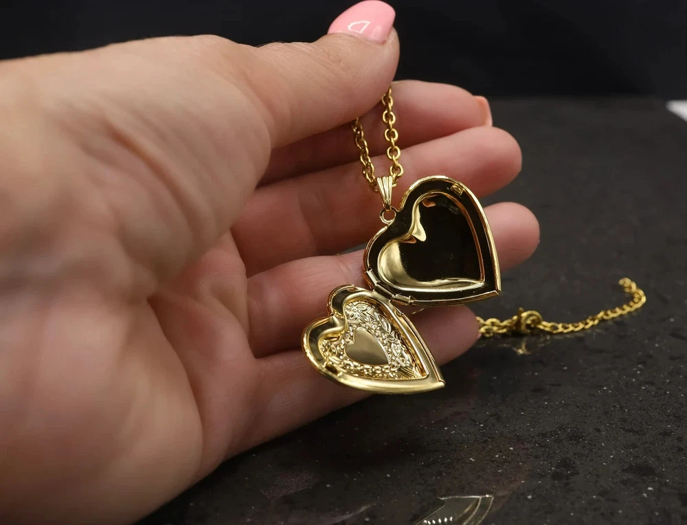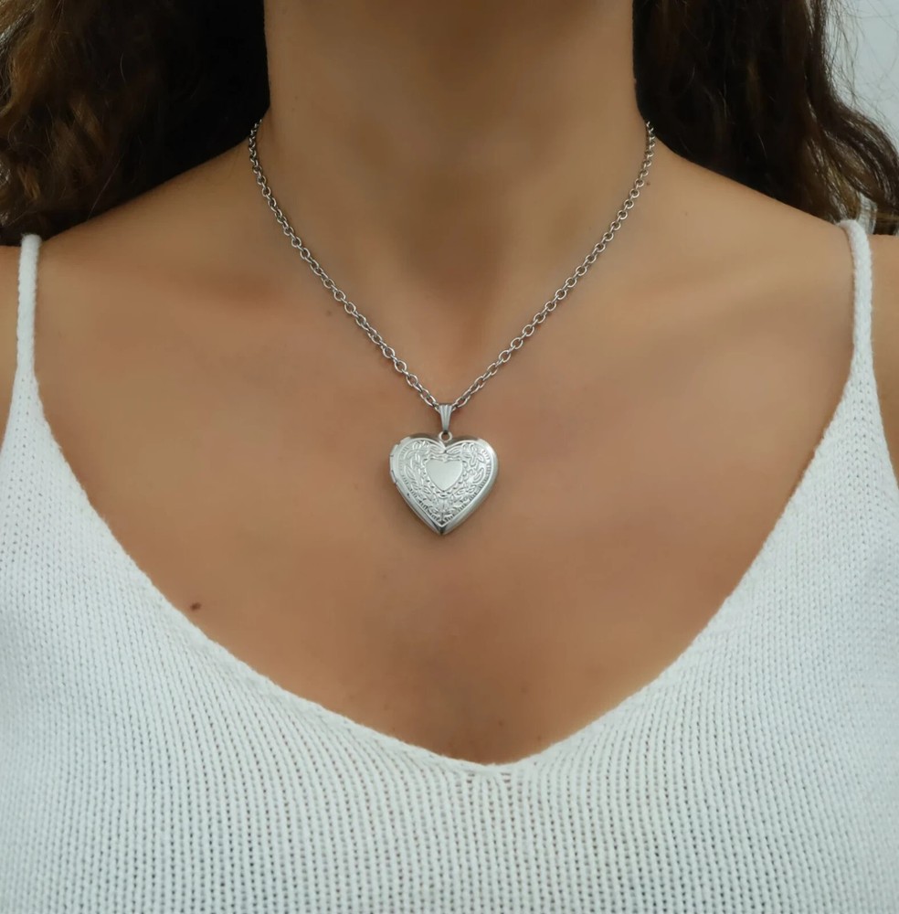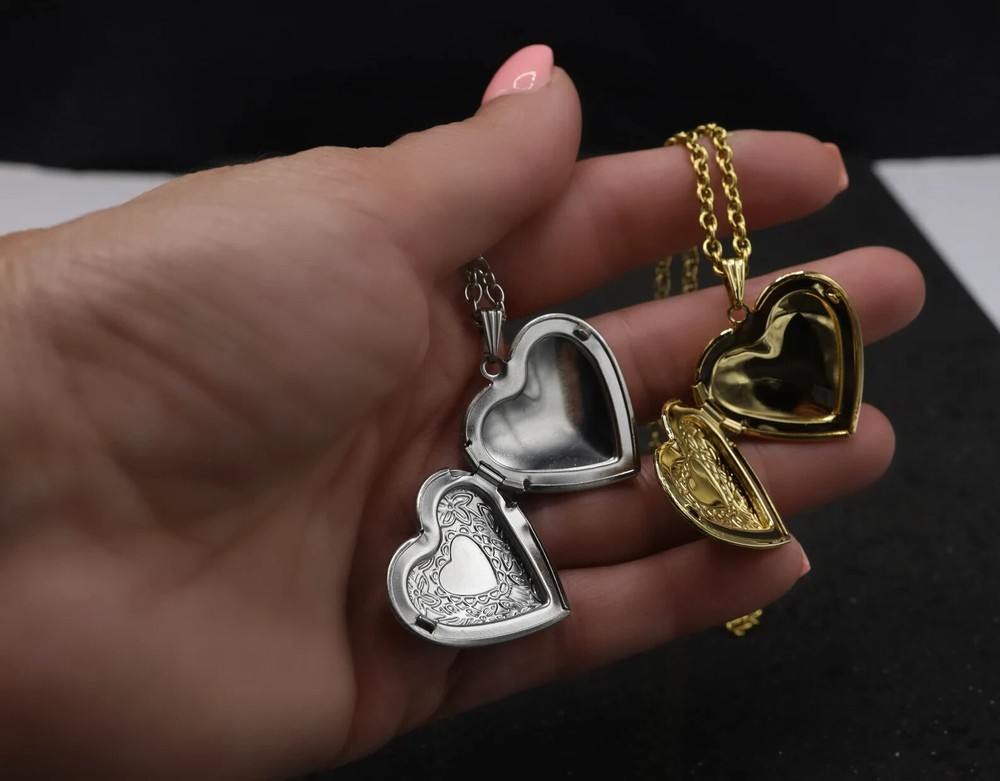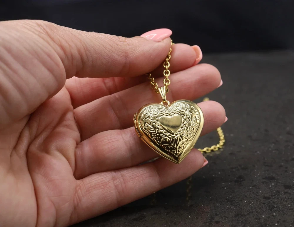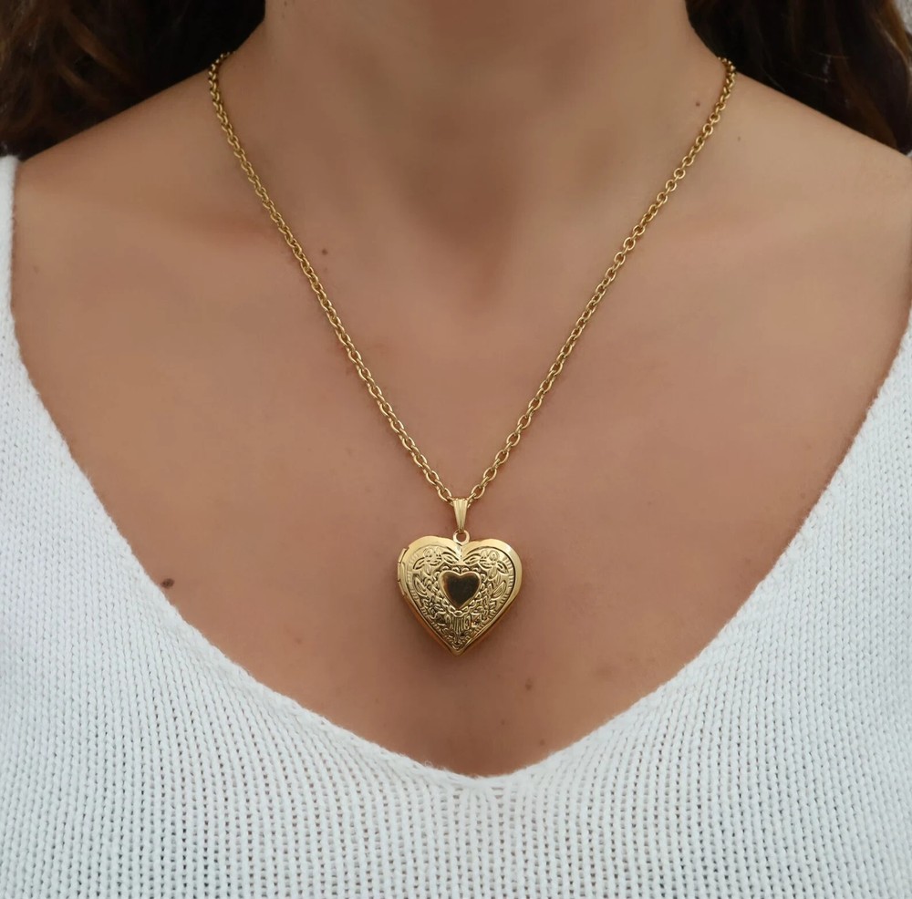 Heart Locket Necklace, Silver Keepsake Gift, Gold Vintage Pendant,Trendy Jewelry