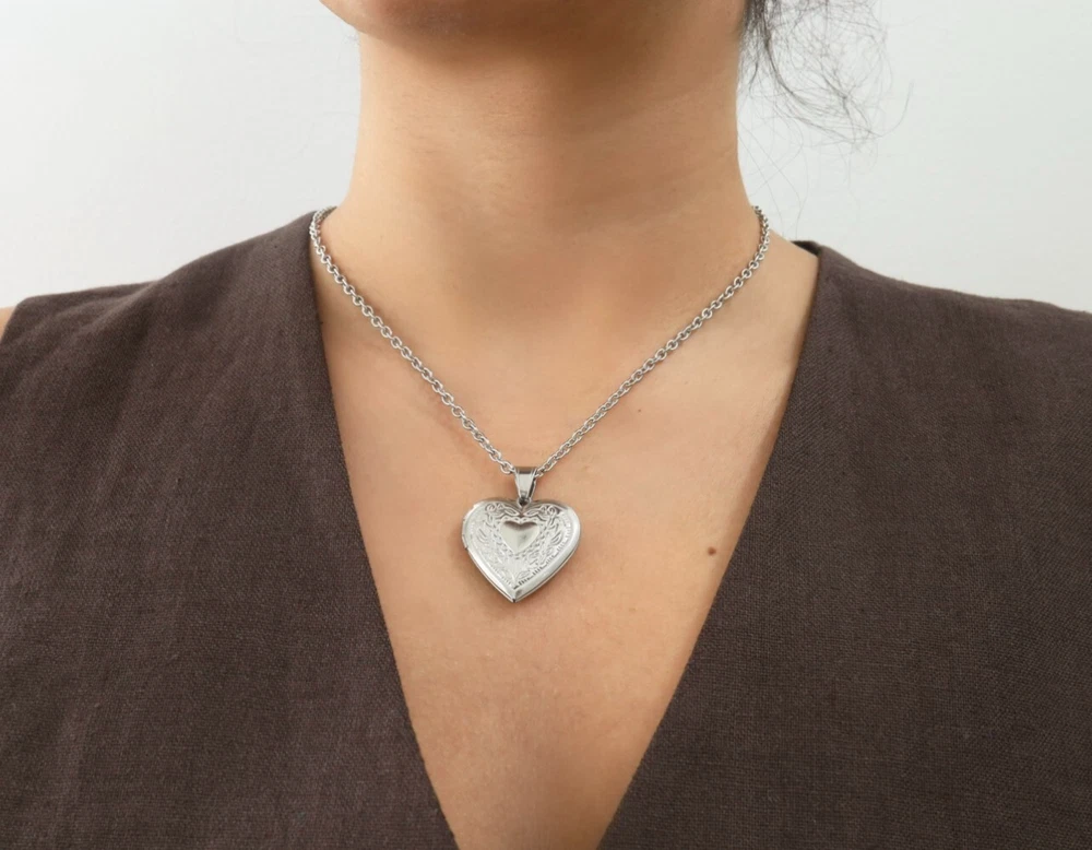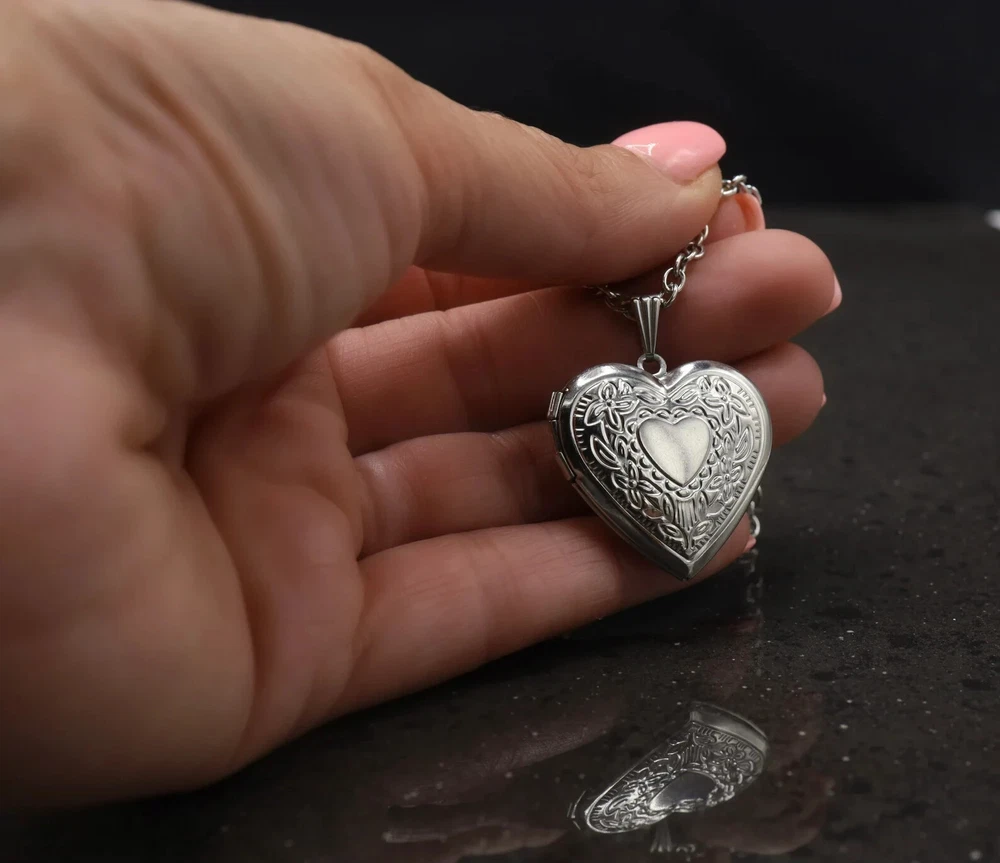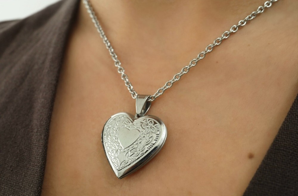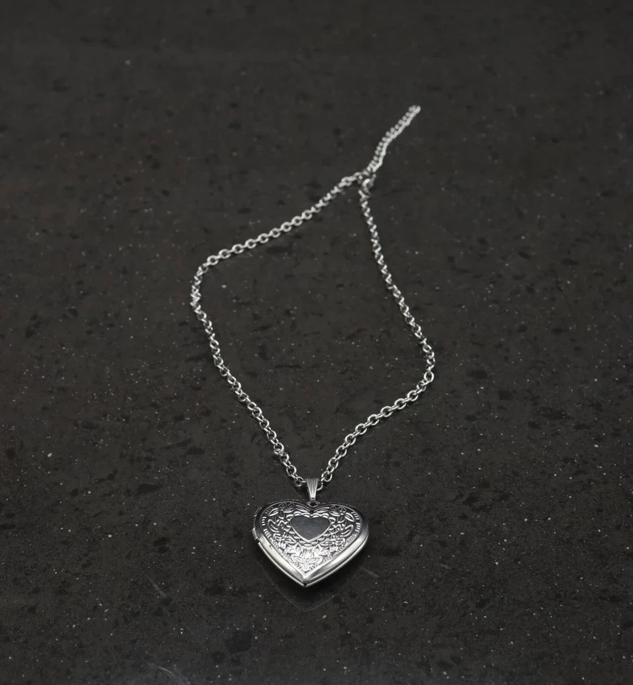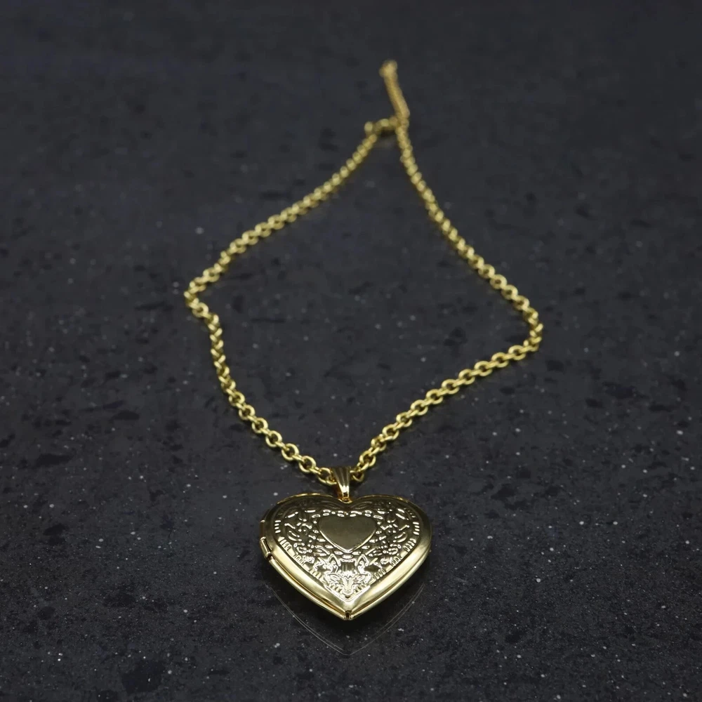 Heart Locket Necklace, Silver Keepsake Gift, Gold Vintage Pendant,Trendy Jewelry