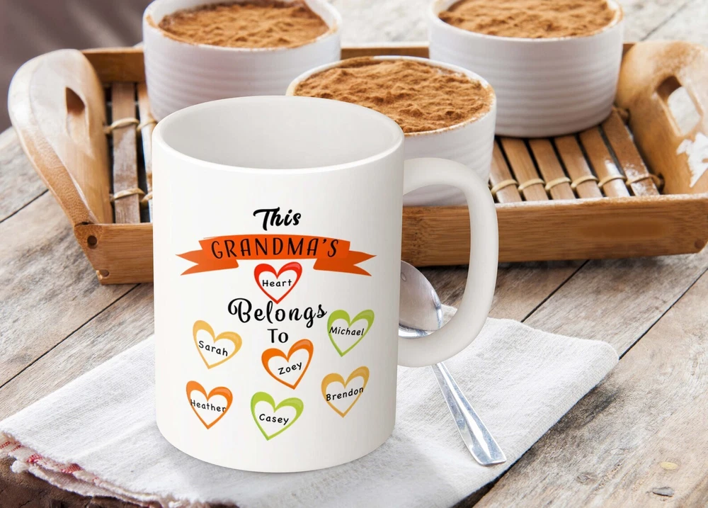 Heart Personalized Grandma Mug Persoanlzied Grandma Gift Hearts Grandma Gift Product Details.. This high quality 11oz. ceramic white mug has a premium hard coat that provides crisp and vibrant color reproduction sure to last for years. Perfect for all hot & cold beverages. The highest quality printing possible is used. It will never fade no matter how many times you wash it. Material: 100% Ceramic. Print both sides. Dishwasher and Microwave Safe. High Gloss + Premium White Finish. Printed in the U.S.A. Personalized & Custom. We support personalized and custom mug to add custom, when placing an order, you can add notes to the "order note" in shipping address section. Also you can contact us directly via message. Shipping Info. Ready to ship in 1 to 2 business days, All products are made-to-order and proudly printed in the United States. Shipped by USPS and DHL, You will receive your order in 5-7 days. Replace & Refund. All products are defective during shipping broken, chipped will be replaced free of charge. You are not satisfied with the product, we will refund 100% money to you. If any other issues arise, please do not hesitate to message, we would be more than happy to assist you.