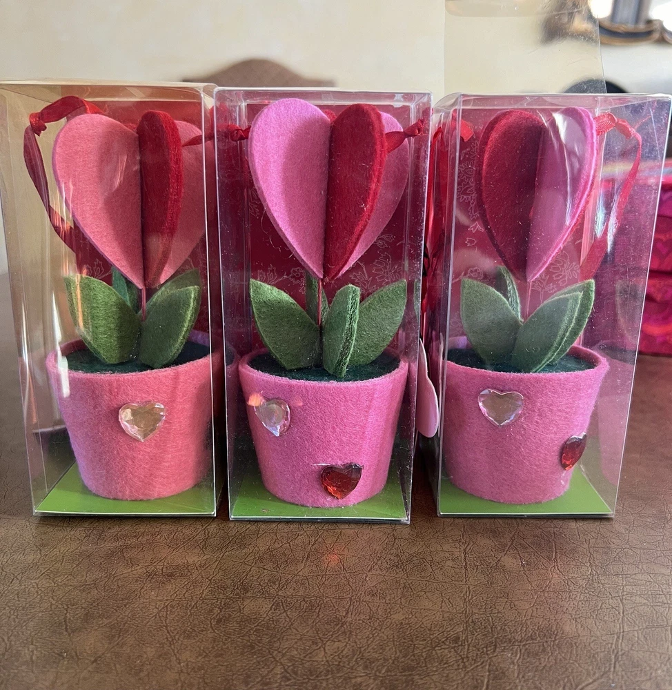 Heart Shape Flower In Pot Valentine. New In Box Pier One. Lot Of 3