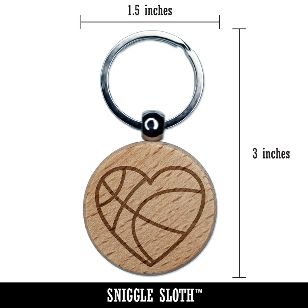 Heart-Shaped Basketball Engraved Wood Keychain Sports Gift Charm