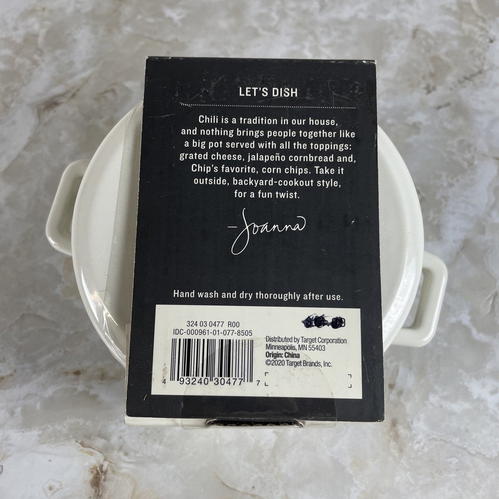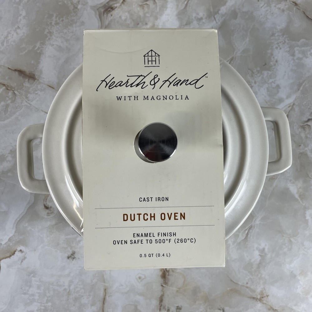 Absolutely love this mini Dutch oven! The Joanna Gaines design is charming, and the compact 0.5 qt size is perfect for small servings or sauces. The white enamel looks elegant, and it arrived in pristine condition with original wrapping. Great quality for the price—highly recommend!