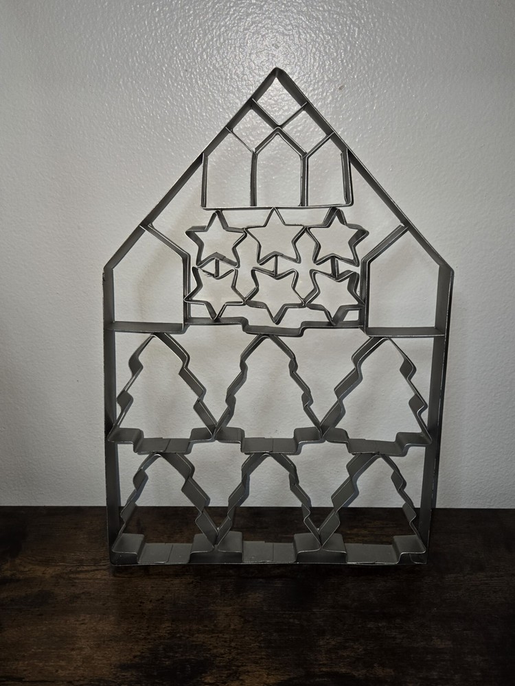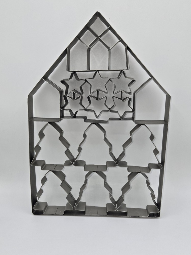 Hearth & Hand with Magnolia Multi-Cookie Cutter is perfect for the holiday season. This cookie cutter is designed in the shape of a house and features stars and Christmas trees patterns. The cutter is made of stainless steel and metal, ensuring durability and long-lasting use. It is 13 inches in height and 9 inches in width, with a depth of 1 inch. The cutter is perfect for creating multi-cut cookies, making it a time-saving and efficient tool for bakers. The silver color complements the holiday theme, adding a touch of elegance to your baked goods. This cookie cutter is a must-have for any baker looking to add a touch of holiday cheer to their creations.
