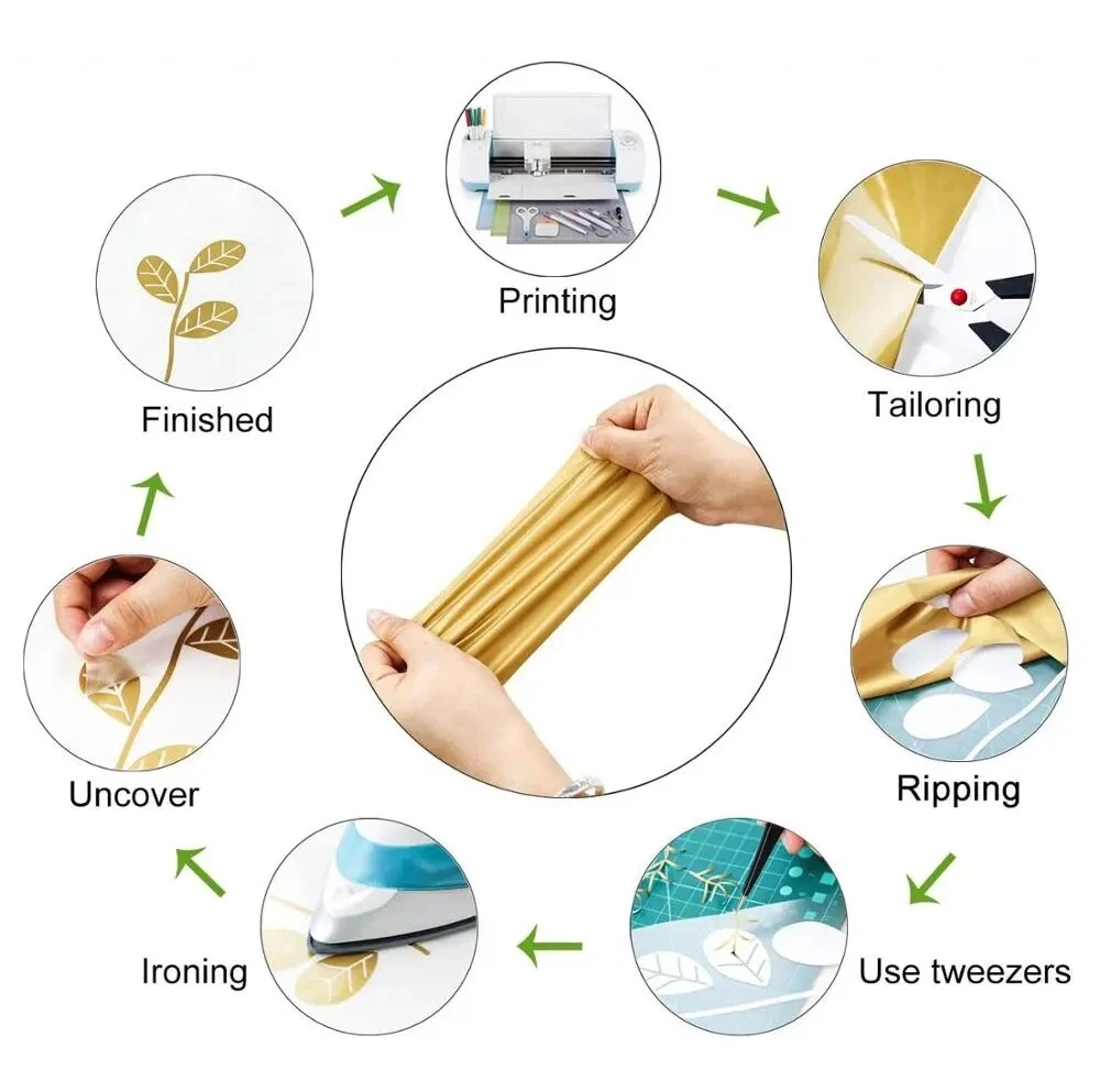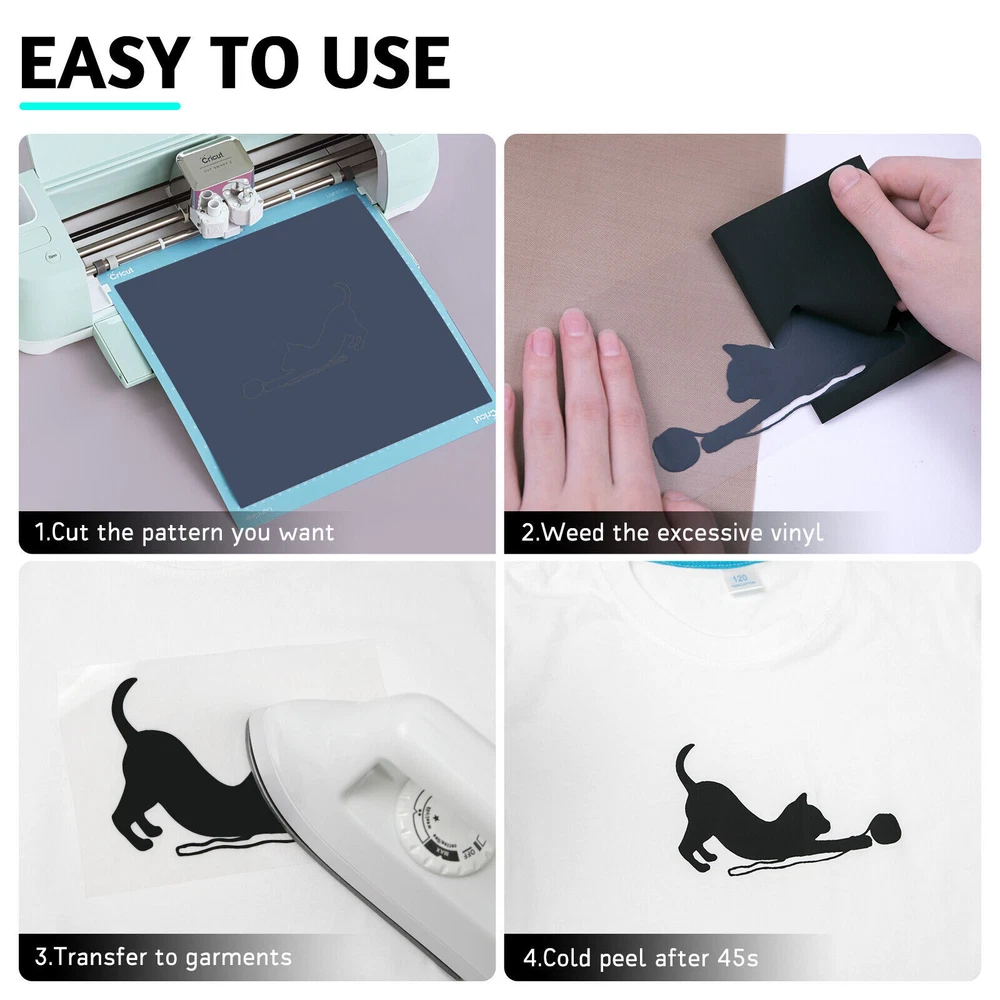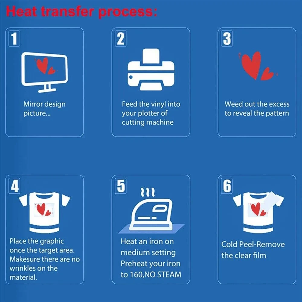 About this item: π― HIGH QUALITY HTV ROLLS π―: HTV heat transfer vinyl bundle is made of quality PU material, thinner but durable, softer and more comfortable. Iron on vinyl rolls have good elasticity and won't broken when stretching. Meanwhile, our heat transfer vinyl rolls bundle has no bubbles during ironing, making your designs perfect. PU material also makes our HTV heat transfer vinyl rolls more safe and eco-friendly, which is very suitable for baby wear. β EASY TO CUT & WEED β: Heat transfer vinyl rolls bundle has excellent cutting features for it's thin and smooth. HTV vinyl bundle is compatible with many kinds of cutters. Our HTV heat transfer vinyl bundle rolls cuts and weeds smoothly, easily and correctly, even with complex and tiny design. Use an iron or heat press to readily transfer your design to the fabrics with proper temperature. Your time is greatly saved. Please note that our vinyl heat transfer is COLD peel. π GREAT STICKINESS & MACHINE WASHABLE π: Ironing with the correct temperature and pressure, HTV vinyl will have superior stickiness. HTV heat transfer vinyl bundle will perfectly adheres on fabrics, is not easy to peel around the edge. Iron on vinyl for cricut is machine washable, it won't crack, peel or fade in repeated washing. Please wait for 24 hours before first washing. π WIDE APPLICATON π: Our HTV is very suitable for cotton, canvas, polyester and cotton blended fabrics. You can transfer it to T-shirts, shirts, caps, canvas shoes, pillows, aprons, handbags, etc. Iron on vinyl rolls are great choices for Halloween, Christmas and other festivals and anniversaries, making a memorable gift for your lover or families on your own. Let's color our life with our HTV heat transfer vinyl bundle! π VIBRANT COLORS π: Heat transfer vinyl rolls have 3 and 5 popular colors: red, green, yellow, black and white. There is no more difficulty in choosing colors. You can get six various colors of small size HTV rolls at the same time. Different colors of HTV bundle can be combined to enrich your design, making up colorful and vivid patterns. How to Use: β Create your design β‘ Cut with the gloss side facing DOWN and the duller back of the HTV vinyl facing up β’ Weed away the excess vinyl, leaving your design on the carrier sheet β£ Heat press at 160Β°C for 5-10 seconds and COLD peel. If you use a home iron, press it with firm pressure β€ Peel the carrier sheet cold, if areas of design lift after application, do step 4 aga