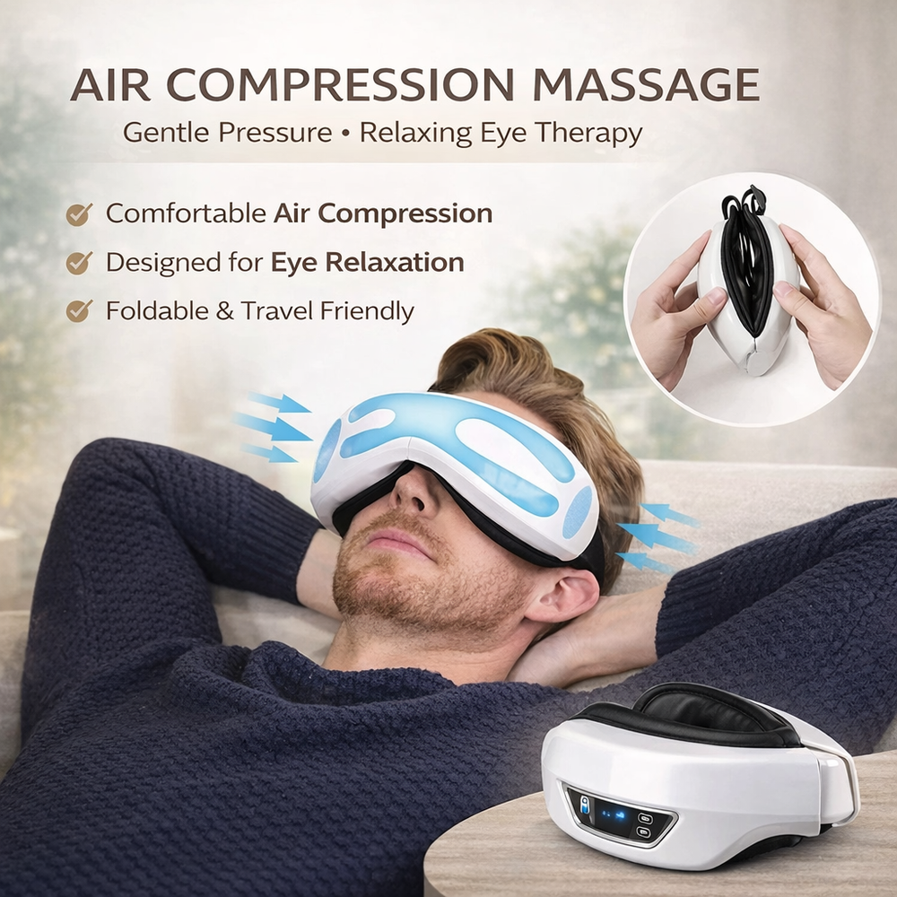 🌿 Relax, Recharge & Care for Your Eyes Turn your daily routine into a calming self-care moment with this soothing Heated Eye Massager. Designed to help you relax after long hours of screen time, reading, or work, this wellness eye mask combines gentle air compression, relaxing heat, and vibration therapy to help you unwind and give your eyes a well-deserved break. Perfect for your evening wind-down routine, meditation time, or mid-day reset . Lightweight and foldable, it’s ideal for home, office, or travel . ✨ Wellness Benefits ✔ Helps relax tired eyes after long screen use ✔ Supports a calming self-care routine ✔ Gentle warmth helps promote relaxation ✔ Ideal for meditation, rest, and evening relaxation ✔ A simple way to bring spa-like comfort into your day Create a peaceful moment for yourself — anytime. 💆♀️ Key Features • Intelligent air compression massage for eye relaxation • Soothing heat function for comfort and relaxation • Gentle vibration modes for added relief • Built-in Bluetooth music connection • Adjustable elastic headband for comfortable fit • 15-minute smart auto shut-off for safety • USB rechargeable battery 🌙 Perfect For ✨ Daily relaxation routine ✨ Screen fatigue relief ✨ Meditation or rest time ✨ Travel relaxation ✨ Home wellness routine ✨ A thoughtful self-care gift 📦 What’s Included ✔ 1 × Heated Eye Massager ✔ 1 × USB Charging Cable ✔ 1 × Storage Pouch ✔ 1 × User Manual Everything you need to start relaxing right away. 🚚 Fast & Reliable Shipping ✔ Ships within 1 business day ✔ Orders packed with care ✔ Ships Monday–Friday ✔ Smoke-free & pet-free environment ⭐ Buy With Confidence ✅ 100% Positive Seller Feedback 💬 Fast response to questions ❤️ Customer satisfaction is our priority If you have any questions, feel free to message us — we’re happy to help!