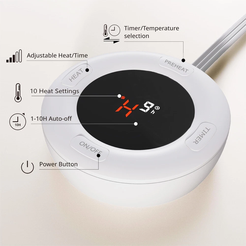 Extremely Comfortable: This heated Mattress pad has luxury 3D pattern air fabric with high quality heating filament that runs throughout the heated mattress pad to provide you with the maximum warmth and comfort. electric mattress pad is perfect for keeping you cosy in bed and on both freezing cold winter nights. 10 Heating Levels & Automatic Shutdown: 10 heat settings 1-10 Hours automatic shut-off function programable digital controllers for you easy push button design to set temperature. Queen size heated mattress pad with Dual controllers allow for custom heat for better comfort. you can choose the temperature that suits you best. Perfect for when you fall asleep or if you forget to unplug your heated mattress pad,The even and continuous heat allows you to sleep all night peacefully. Overheat Protection: This electric mattress pad comes with great reliable system including overheat protection system and automatic safety shut off system, which can constantly monitors the temperature of the electric mattress pad, If the electric mattress protector reaches a certain dangerous temperature, the system will automatically turn off the mattress cover, the quality of the electric mattress pad are certified by ETL&FCC Certification. Fitted Sheet Style Design: Our heated mattress pad are designed for all types of mattresses.With a stretchy skirt and elastic band,our electric mattress pad can perfect fit your mattress without being too loose or too tight.Our heated mattress pad queen size heated mattress pad provides you a smooth and neat surface,no crinkle feeling or sound when sleeping,.Don't worry about “slip off”.This heated queen size mattress pad measures 60''x80'' and has deep pocket fits up to 15". Easy to Maintain: Our queen size electric mattress pad is machine washable and dryer for your convenience.this queen size electric mattress pad can be machine washed in cold water , tumble dry at low heat.DO NOT iron,bleach or dry clean. Remove the controller and cool it down before cleaning. Important: Read user manual for complete care instructions.