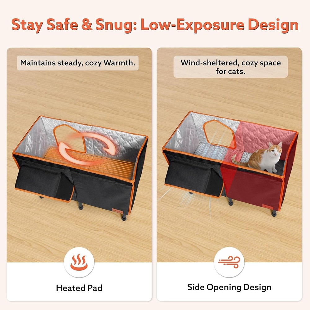 Heated Outdoor Cat House for Outside Winter 100% Waterproof Oxford Tarpaulin