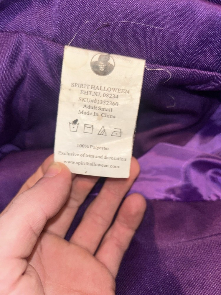 Material: 100% Polyester Theme: Halloween Style: Coats & Cloaks Size: S MPN: 01332360 Color: Purple Brand: Spirit Halloween