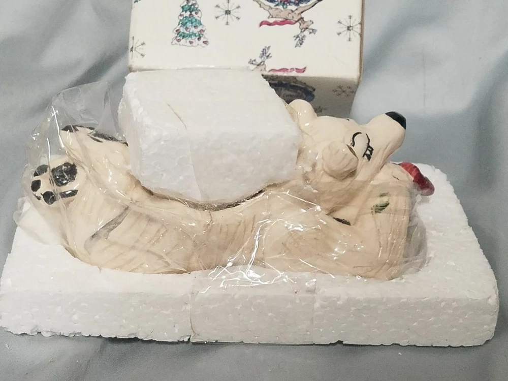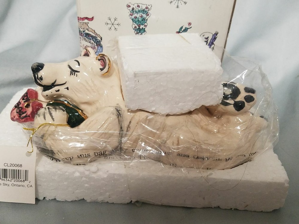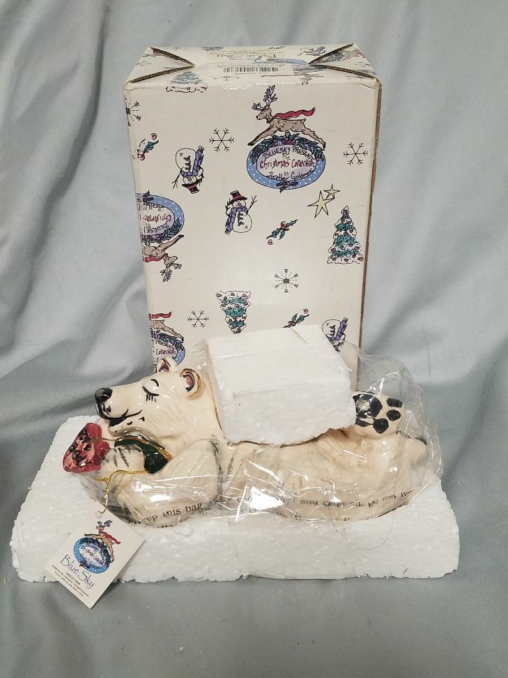 Heather Goldminc Blue Sky Sleeping Christmas Polar Bear Tea light Holder Brand New still in the factory wrapping