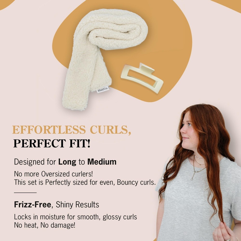 Heatless Hair Curler | Hair Curlers to Sleep in for Overnight Curls | Heatless Curls for Medium to Long Hair | Thick Heatless Hair Curler for Women | No Heat Styling | Cream Product Details Color: Cream Brand: BlairCo. MPN: Curler_ML-Beige UPC: 732388086474 EAN: 0732388086474 Product Benefits: Curling Brand: BlairCo. Hair Type: Straight Color: Cream Hair Type: Curly Product Dimensions : 49 x 3 x 1 inches; 0.5 ounces UPC : Manufacturer : BlairCo. Best Sellers Rank: #113,967 in Beauty & Personal Care (See Top 100 in Beauty & Personal Care) #409 in Hair Rollers #409 in Hair Rollers Customer Reviews: 5.0 5.0 out of 5 stars 9 ratings HEALTHY CURLING OPTION: Achieve stunning, voluminous curls with heatless curlers that protect your hair from damage. Create no heat curls overnight and wake up to salon-quality, healthy, bouncy curls without effort EASY, COMFORTABLE DESIGN: Perfect for creating the best extra long heatless hair curler results, this set delivers heatless curls with hair curlers no heat. A soft and user-friendly design ensures frizz-free, shiny results for every curl. EFFORTLESS TO USE: Wrap your hair using overnight hair curlers and experience the ease of sock curls for hair. These overnight curlers and no heat hair curlers, featuring a heatless curl headband, are ideal for achieving perfect curls effortlessly. CONVENIENT AND SIMPLE TO APPLY: Includes a thoughtfully crafted heatless curling headband for flawless styling. Whether you have heatless hair curler long hair or thick hair, this set ensures a seamless curling process without extra tools SUITABLE FOR ALL HAIR TYPES: Whether your hair is straight, wavy, or thick, the Blair Co. heatless curling headband is perfect for achieving natural curls. Enjoy the benefits of a heatless hair curler long hair with consistent results for all