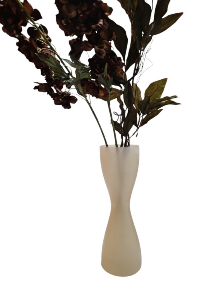 Unique Heavy Glass Hourglass Shaped Vase 14" From Poland Frosted Cream Color $40 I HAVE A SECOND ONE, IT HAS A SMALL FLAW, IF INTERESTED, MESSENGER ME AND I WILL SEND A PIC OF THE FLAW IT WOULD BE $35 THANK YOU