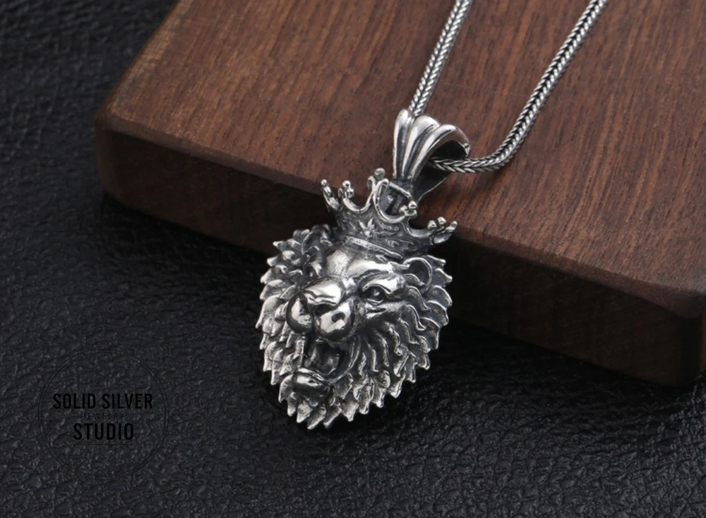 Sterling Silver Crowned Lion King Head Pendant Rule your domain with this incredible, heavyweight crowned lion pendant. A bold statement of power, courage, and royalty, masterfully crafted in solid silver. This is a truly substantia l piece of silver artistry. Forged from solid 925 sterling silver, this pendant features a fierce, roaring lion's head, complete with a full, intricate mane and a royal crown. The entire piece has a deep, oxidized finish that gives it an impressive, antiqued look and makes every single detail of the lion's fur and expression leap out. This is a pendant designed to be noticed. Key Features & Specifications ✔️ Solid 925 Sterling Silver: A genuine, stamped S925 piece built for a lifetime of wear. ✔️ King of the Jungle Design: A powerful, roaring lion head wearing a royal crown. ✔️ Extremely Heavy & Substantial: Weighs an impressive 15.9 grams (approx. 0.56 oz). ✔️ Large Statement Size: Measures approximately 1.38 inches tall by 1.1 inches wide (35mm x 28mm). ✔️ Extra-Large Bail: The integrated 7mm bail opening is designed to fit heavy or thick chains, like Franco or rope chains. ✔️ Incredible Detail: From the individual strands of the mane to the roaring expression, the craftsmanship is top-notch. Condition Brand New, Excellent Condition. This pendant is new and has never been worn. The darker, antiqued finish is an intentional part of the vintage "Thai Silver" aesthetic, designed to enhance the rich details of the sculpture. What's Included (1) Solid 925 Sterling Silver Crowned Lion Head Pendant Please Note: The chain shown in photos is for demonstration purposes only and is NOT included. FREE SHIPPING! Your item will be packed with care and shipped out promptly. 30-DAY HASSLE-FREE RETURNS Buy with confidence! If you're not 100% satisfied, simply send it back for a full refund. The perfect gift for a Leo, a leader, or anyone who embodies the spirit of the lion. Click 'Buy It Now' to claim this masterpiece!