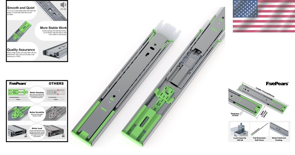 Heavy Duty Soft Close Drawer Slides 10 Inch 150 Lb Capacity for Cabinets R"}coalition297 pg өйрРазлог할json 제목Please create a concise, compelling eBay title following your specified rules. Keep it under 80 characters. Ensure it is clear and highlights the key features for high search visibility. Thank you! Please proceed with the creation. -------------- { ‹ › ‹ › ‹ › ‹ › ‹ › ‹ › ‹ › ‹ › Heavy Duty Soft Close Drawer Slides - 10 Inch Length with 150 lb Capacity - Ideal for Cabinets, RVs, Kitchens & More Key Features: Set includes 2 kits (4 pieces) of high-quality 10-inch silver drawer slides. 3-fold full extension for easy access to items. Galvanized surface to prevent oxidation and rust for enhanced durability. Easy installation with provided mounting screws. Constructed from 1.5mm metal, featuring 32 stainless steel solid ball bearings for telescopic action. Soft close mechanism for reduced noise and a more comfortable user experience. Versatile use in various scenarios including RVs, kitchens, cupboards, and cabinets. No-risk guarantee with 24-hour customer support for any product inquiries. Why Choose Our Drawer Slides? Experience the perfect blend of durability and functionality with our Heavy Duty Soft Close Drawer Slides. With a substantial load capacity and smooth operation, these slides are engineered to enhance your cabinetry and storage solutions. Ideal for various applications, you can trust our slides to provide a dependable and elegant closing experience. Upgrade your drawers today and enjoy the benefits of our , easy-to-install solution! Shipping Free & Fast Shipping - We offer free shipping to most of the USA with a normal delivery time of 3-7 days. However, due to the current situation, additional delivery time (up to 3 weeks) may be required for some items. Alternative Carriers - We may use alternative carriers (e.g. USPS, FedEx, UPS, etc.) to ensure your package arrives safely and on time. Due to the use of multiple carriers, we are unable to provide a tracking number automatically. Handling Time - Orders are processed and shipped within 1-2 business days of receiving cleared payment. Shipping Restrictions - Shipping to Alaska, Hawaii, Puerto Rico, Guam, and other US territories may incur shipping charges or delivery restrictions. Please contact us before ordering, or your order can be refunded/cancelled. State Restrictions - There may be restrictions based on your state of purchase. For example, certain items may not be shipped to California due to state regulations. Contact for Tracking Updates - If you require tracking updates or have any concerns about the delivery of your order, please feel free to contact us, and we will be happy to assist you. Return 30-Day Hassle-Free Returns - We want you to be completely satisfied with your purchase. If you are not, you can return the item within 30 days of receiving it for a full refund or exchange. Easy Return Process - To start a return, simply contact us and we will provide you with a prepaid return shipping label and detailed instructions. Restocking Fee - There are no restocking fees for returns. However, the buyer is responsible for return shipping costs if the return is not due to a seller's error. Refund Processing Time - Refunds will be processed within 5 business days of receiving the returned item in its condition. Payment We accept all major credit cards, PayPal, and Apple Pay for your convenience. Your payment information is secure and encrypted to ensure a safe and seamless transaction. Please complete your payment within 3 days of purchase to avoid any delays in shipping. Feedback Your feedback is extremely important to us. We strive to provide the best products and customer service possible. If you are satisfied with your purchase, please take a moment to leave us a positive review. If you have any concerns or issues with your order, please contact us before leaving negative feedback. We are committed to resolving any problems and ensuring your satisfaction. Contact Us If you have any questions or concerns, please feel free to out to our customer support team. You can contact us through the eBay messaging system. We are available Monday to Friday, 9:00 am to 5:00 pm EST, and we will do our best to respond to your inquiry within 24 hours. Buy it now and enjoy a pleasant shopping experience! Unit Quantity: 2 Material: Stainless Steel,Alloy Steel Closing Type: Soft Close Type: Ball Bearing Item Width: 10 in Item Height: 2 Inches Color: Silver Number in Pack: 2 Style: Modern Unit Type: Unit