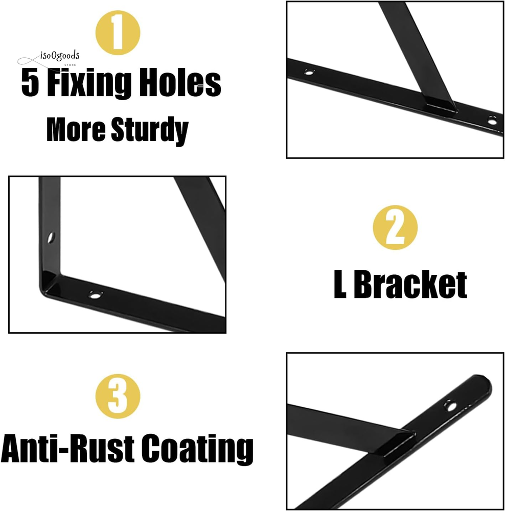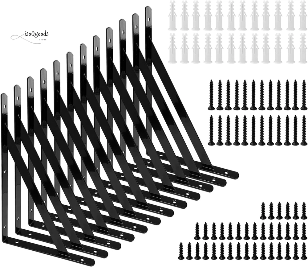 Upgrade Your DIY Projects with Heavy Duty Shelf Brackets! Package Includes: 12 x Brackets 24 x Long Screws 24 x Wall Anchors 36 x Short Screws Product Details: Size: 12" x 8" (L 11.8" x H 7.5" x W 0.6") Color: Black Coated Finish Thickness: 0.08" Weight Capacity: 110lbs per pair Supports Shelves: 12 inches to 16 inches deep Features: Triangle Design: Built with a 90-degree triangular structure to hold heavy items securely without bending. Premium Quality: Made from high-quality steel with a black powder-coating finish, ensuring durability and resistance to water and corrosion. Easy Installation: Pre-drilled fixing holes on each side and included screws make installation a breeze. Perfect for DIY floating shelving in your home, office, garage, kitchen, and more! With this rewritten description, your listing will be more engaging and likely to attract potential buyers on eBay. Plus, the emphasis on key features and benefits should help improve your search ranking!