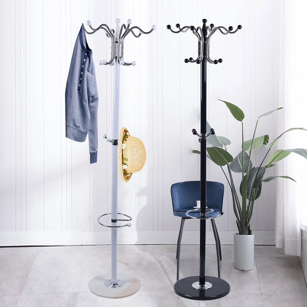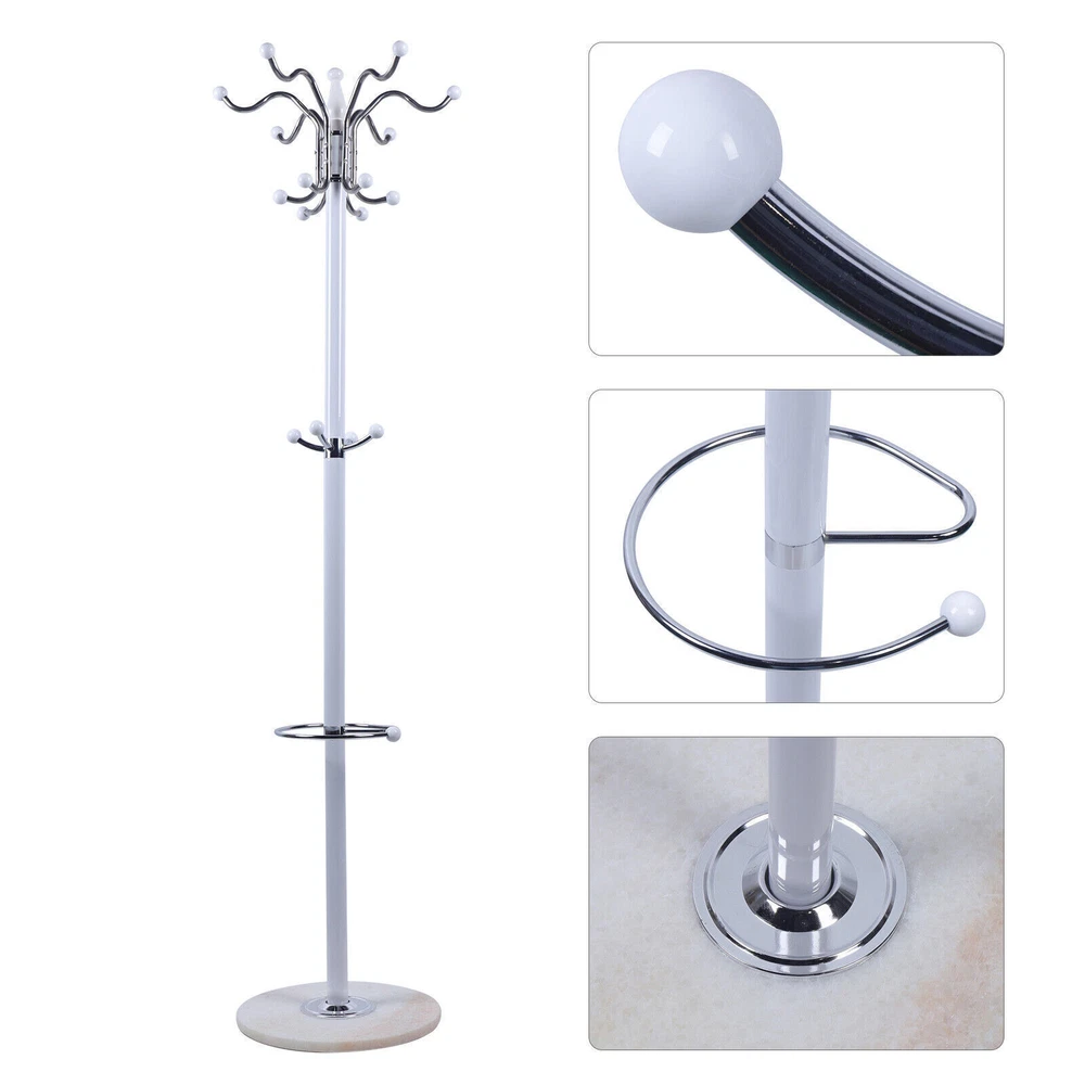 Specifications: Color: White/ Black Material: Marble + Metal Assembly: Required Product Size: 38cm*170cm/15"*67" (Diameter*height) Product Weight: 18 lbs Bearing capacity: 44 lbs Package Contents: 1 x Coat Rack Heavy Duty Coat Rack Hat Bag Stand Tree Clothes Hanger Holder 16-Hook Organizer Description 【Modern & Classic】An elegant construction and finish, our coat stand is suitable for your dorm room, apartment, house, office, and any other rooms. And it will match your surroundings, furniture, and style seamlessly. 【High Quality】Constructed with metal tube frame and polished marble base, this coat stand is more sturdy and durable, which will last years to use. 【Multifunctional Design】With 4 levels and 16 Hooks, this coat stand not only can storage your coats and jackets, but also your handbags, scarves, and umbrellas. 【Clothing Protection】Equipped with ball tipped hooks, our coat stand will protect your clothes from damage. 【Easy Handling】This coat stand is very easy to clean, and you can just wipe it with damp cloth. And the compact shape makes it convenient for storage. Specifications: Color: White/ Black Material: Marble + Metal Assembly: Required Product Size: 38cm*170cm/15"*67" (Diameter*height) Product Weight: 18 lbs Bearing capacity: 44 lbs Package Contents: 1 x Coat Rack Payment Delivery details Terms of sales About us Contact us Payment We accept ebay payment 。 Fees such as import duties, taxes are not included in the item price or shipping costs. These charges are the buyer's responsibility. Delivery details Shipping: 2-9 working days to: USA Terms of sales We maintain high standards of excellence and strive for hundred percent customer satisfaction. Feedback is very important to us. We hope that you contact us immediately before you give neutral or negative feedback, so that we can address your concerns. It is impossible to address issues if we do not know about them! About us Your satis faction is our ultimate goal. We work hard to earn your trust and future business. Our certified technicians have tested each item before shipping. The unit comes with 1 year limited warranty on all manufacturing defects. a) If you receive a defective item, you may return it or ask for a discount. Please contact us within 14 days after you receive the package. b) What you returned must be intact and in its original packaging as re? u. Customer is responsible for shipping costs of the returned item. c) We will cover the cost of shipping back t with the shipping rate indicated in the registration page. We will send you a new unit or refund the full payment you paid. Thank you. Contact us Business Hour Business Hour: Monday To Friday: 8:30 AM to 5:00 PM (Beijing China time) Due to time zones, our reply to your questions may not be immediately. But within above working time, we will reply your email within 24 hours. If it's non-workdays, please kindly be patient and wait till Monday. Please contact us with ebay message. Please feel free to contact us if you have any questions. Monday To Friday: 8:30 AM to 5:00 PM (Beijing China time) Due to time zones, our reply to your questions may not be immediately. But within above working time, we will reply your email within 24 hours. If it's non-workdays, please kindly be patient and wait till Monday. Please contact us with ebay message. Please feel free to contact us if you have any questions.