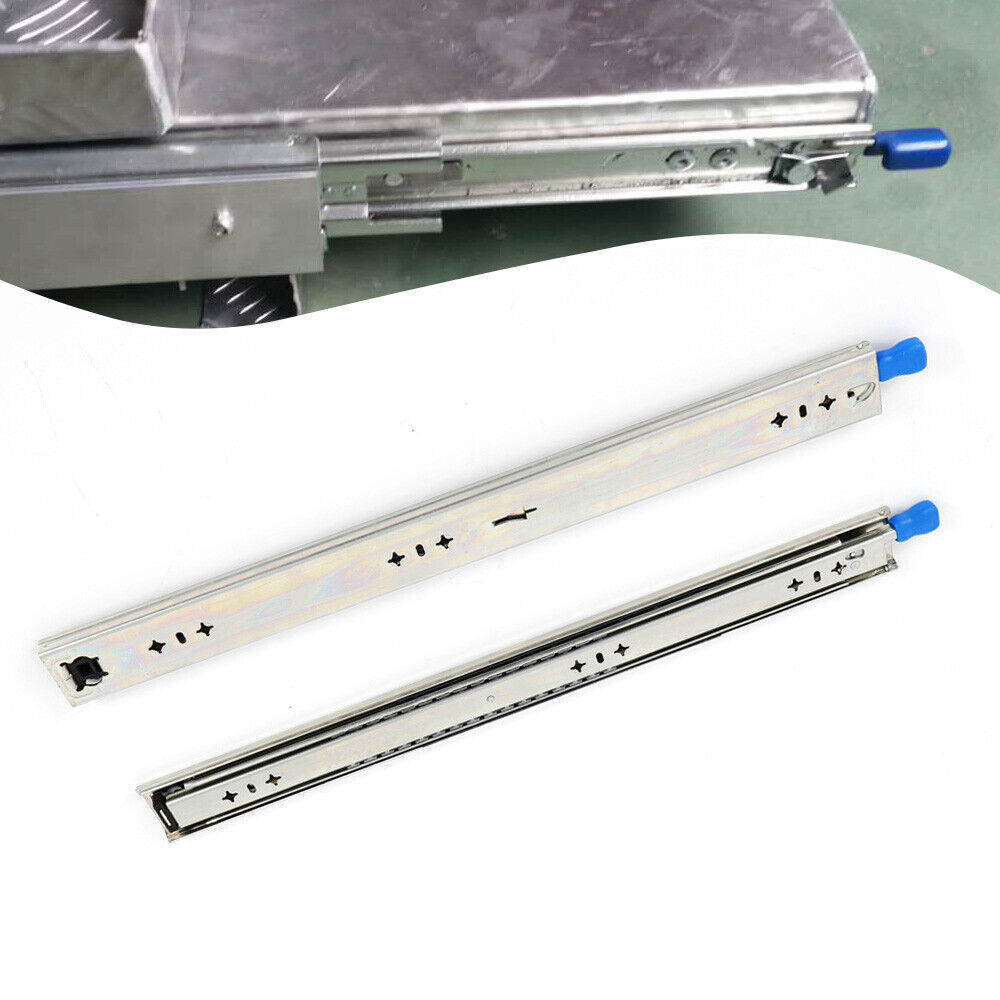 Package Included: 1 Pair Heavy Slide (Excluding Mounting Brackets and Screws) Heavy Duty 1Pair Drawer Slides w/Lock 20"-40"Full Extension Ball Bearing Tool US This Is a New Heavy-duty Lock Slide Rail with Good Stability, Small Swing, Smooth Sliding, Easy to Use, Suitable for All Kinds of Cupboard, Tool Cabinets and Other Large Equipment, Is the Furniture Industry, Caravan and Industrial Field of High-quality Choice. Specification: Colour: Silver Type: Heavy Slides Material: High Quality Cold Rolled Sheet Bearing Capacity: 120kg Surface Treatment: Blue Zinc, Electrophoretic Black Installation Form: Drawer Side Installation Specifications: 20"(500mm),24 ” (600mm),36(900mm) ” ,40 ” (1000mm). Origin Length: 19.6”, 23.6”,35.4”,39.3”. Extended Length: 39.3 ” , 47.2 ” , 70.8 ” ,78.7 ” . Features: 1. the Surface Is Coated with High Density Zinc Metal, Which Can Effectively Prevent the Corrosion of the Product Surface and Prolong the Service Life of the Product. 2. Anti-skid Rubber Pad, Increase Friction, Put Back Track Colloidal Fall and Open Automatically After Closing. 3. Anti-skid Device with Lock, Suitable for Heavy Industrial Equipment. 4. Solid Steel Ball, Check Can Bear 120 Kg (the Longer the Pull out, the Smaller the Load). 5. Three-section Track Design, Effective Load-bearing, Precise Contraction. Package Included: 1 Pair Heavy Slide (Excluding Mounting Brackets and Screws) Note: -Due to Different Producing Batches, Product Details Might Be a Little Different. If You Minding the Difference, Please Buy It Carefully. -Please Allow 1-3mm Differs Due to Manual Measurement. -Due to the Different Display and Different Light, the Picture May Not Reflect the Actual Color of the Item. Thanks for Your Understanding. Payment Delivery details Terms of sales About us Contact us Payment We accept ebay payment 。 Fees such as import duties, taxes are not included in the item price or shipping costs. These charges are the buyer's responsibility. Delivery details Shipping: 2-9 working days to: USA Terms of sales We maintain high standards of excellence and strive for hundred percent customer satisfaction. Feedback is very important to us. We hope that you contact us immediately before you give neutral or negative feedback, so that we can address your concerns. It is impossible to address issues if we do not know about them! About us Your satis faction is our ultimate goal. We work hard to earn your trust and future business. Our certified technicians have tested each item before shipping. The unit comes with 1 year limited warranty on all manufacturing defects. a) If you receive a defective item, you may return it or ask for a discount. Please contact us within 14 days after you receive the package. b) What you returned must be intact and in its original packaging as re? u. Customer is responsible for shipping costs of the returned item. c) We will cover the cost of shipping back t with the shipping rate indicated in the registration page. We will send you a new unit or refund the full payment you paid. Thank you. Contact us Business Hour Business Hour: Monday To Friday: 8:30 AM to 5:00 PM (Beijing China time) Due to time zones, our reply to your questions may not be immediately. But within above working time, we will reply your email within 24 hours. If it's non-workdays, please kindly be patient and wait till Monday. Please contact us with ebay message. Please feel free to contact us if you have any questions. Monday To Friday: 8:30 AM to 5:00 PM (Beijing China time) Due to time zones, our reply to your questions may not be immediately. But within above working time, we will reply your email within 24 hours. If it's non-workdays, please kindly be patient and wait till Monday. Please contact us with ebay message. Please feel free to contact us if you have any questions. Brand CNCEST ※Features4 Excellent After-sales Service※Creative Design Features ❤High quality w/ warranty❤ ❤Highlights❤ ❤Durable Material❤,❤Beautiful Appearance❤,❤Creative Design❤ ★Features★ ★★★Good Quality Guarantee★★★Long Service Life★★★ 🔥Feature🔥 🔥High Performance🔥Reliable Quality🔥Good Stability🔥 * Feature * *Good Stability*Creative Design*Ideal Gift*Long Service Life* 国内运输 Standard Shipping Item Location CA/NJ/Austell Type Heavy slides MPN Does Not Apply Material high quality cold rolled sheet Color Silver Bearing capacity 120KG Surface treatment blue zinc, electrophoretic black Installation Form Drawer Side Installation Specifications 20"(500mm),24”(600mm),36(900mm)”,40”(1000mm) Note excluding mounting brackets and screws Item Width N/A Item Height N/A Item Length N/A On Jul 28, 2025 at 19:18:28 PDT, seller added the following information: