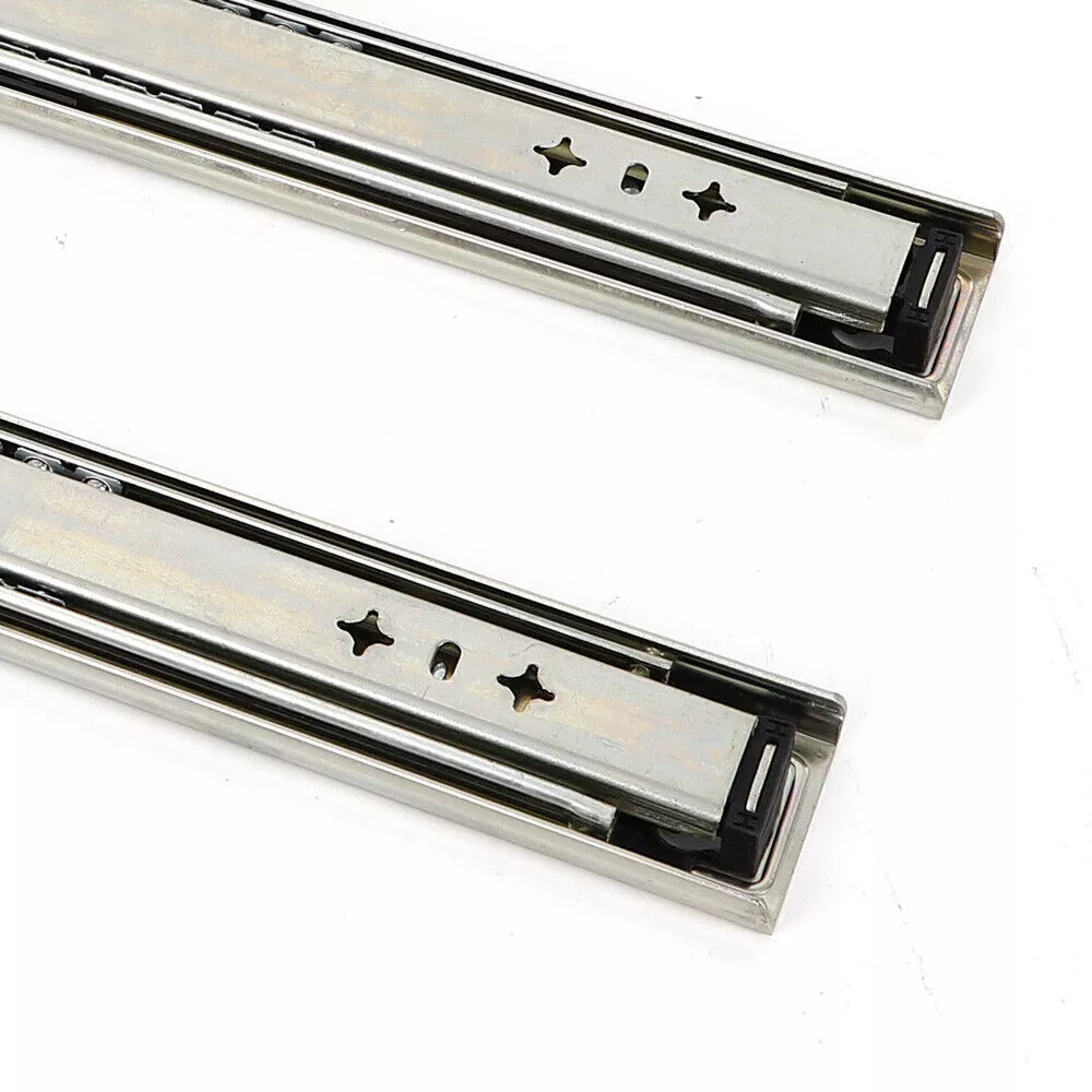 This is a new heavy-duty lock slide rail with good stability, small swing, smooth sliding, easy to use, suitable for all kinds of cupboard, tool cabinets and other large equipment, is the furniture industry, caravan and industrial field of high-quality choice. Specification: Colour: Silver Type: Heavy slides Material: high quality cold rolled sheet Bearing capacity: 120KG Surface treatment: blue zinc, electrophoretic black Installation Form: Drawer Side Installation Specifications: 20"(500mm),24”(600mm),36(900mm)”,40”(1000mm). Origin Length: 19.6”, 23.6”,35.4”,39.3”. Extended Length: 39.3”, 47.2”, 70.8”,78.7”. Features: 1. The surface is coated with high density zinc metal, which can effectively prevent the corrosion of the product surface Heavy Duty 1Pair Drawer Slides w/Lock 20"-40"Full Extension Ball Bearing Tool US This Is a New Heavy-duty Lock Slide Rail with Good Stability, Small Swing, Smooth Sliding, Easy to Use, Suitable for All Kinds of Cupboard, Tool Cabinets and Other Large Equipment, Is the Furniture Industry, Caravan and Industrial Field of High-quality Choice. Specification: Colour: Silver Type: Heavy Slides Material: High Quality Cold Rolled Sheet Bearing Capacity: 120kg Surface Treatment: Blue Zinc, Electrophoretic Black Installation Form: Drawer Side Installation Specifications: 20"(500mm),24 ” (600mm),36(900mm) ” ,40 ” (1000mm). Origin Length: 19.6”, 23.6”,35.4”,39.3”. Extended Length: 39.3 ” , 47.2 ” , 70.8 ” ,78.7 ” . Features: 1. the Surface Is Coated with High Density Zinc Metal, Which Can Effectively Prevent the Corrosion of the Product Surface and Prolong the Service Life of the Product. 2. Anti-skid Rubber Pad, Increase Friction, Put Back Track Colloidal Fall and Open Automatically After Closing. 3. Anti-skid Device with Lock, Suitable for Heavy Industrial Equipment. 4. Solid Steel Ball, Check Can Bear 120 Kg (the Longer the Pull out, the Smaller the Load). 5. Three-section Track Design, Effective Load-bearing, Precise Contraction. Package Included: 1 Pair Heavy Slide (Excluding Mounting Brackets and Screws) Note: -Due to Different Producing Batches, Product Details Might Be a Little Different. If You Minding the Difference, Please Buy It Carefully. -Please Allow 1-3mm Differs Due to Manual Measurement. -Due to the Different Display and Different Light, the Picture May Not Reflect the Actual Color of the Item. Thanks for Your Understanding. Payment Delivery details Terms of sales About us Contact us Payment We accept ebay payment 。 Fees such as import duties, taxes are not included in the item price or shipping costs. These charges are the buyer's responsibility. Delivery details Shipping: 2-9 working days to: USA Terms of sales We maintain high standards of excellence and strive for hundred percent customer satisfaction. Feedback is very important to us. We hope that you contact us immediately before you give neutral or negative feedback, so that we can address your concerns. It is impossible to address issues if we do not know about them! About us Your satis faction is our ultimate goal. We work hard to earn your trust and future business. Our certified technicians have tested each item before shipping. The unit comes with 1 year limited warranty on all manufacturing defects. a) If you receive a defective item, you may return it or ask for a discount. Please contact us within 14 days after you receive the package. b) What you returned must be intact and in its original packaging as re? u. Customer is responsible for shipping costs of the returned item. c) We will cover the cost of shipping back t with the shipping rate indicated in the registration page. We will send you a new unit or refund the full payment you paid. Thank you. Contact us Business Hour Business Hour: Monday To Friday: 8:30 AM to 5:00 PM (Beijing China time) Due to time zones, our reply to your questions may not be immediately. But within above working time, we will reply your email within 24 hours. If it's non-workdays, please kindly be patient and wait till Monday. Please contact us with ebay message. Please feel free to contact us if you have any questions. Monday To Friday: 8:30 AM to 5:00 PM (Beijing China time) Due to time zones, our reply to your questions may not be immediately. But within above working time, we will reply your email within 24 hours. If it's non-workdays, please kindly be patient and wait till Monday. Please contact us with ebay message. Please feel free to contact us if you have any questions. ❤Highlights❤ ❤Durable Material❤,❤Beautiful Appearance❤,❤Creative Design❤ ★Features★ ★★★Good Quality Guarantee★★★Long Service Life★★★ 🔥Feature🔥 🔥High Performance🔥Reliable Quality🔥Good Stability🔥 * Feature * *Good Stability*Creative Design*Ideal Gift*Long Service Life* 国内运输 Standard Shipping Item Location CA/NJ/Austell Type Heavy slides Brand Unbranded MPN Does Not Apply Material high quality cold rolled sheet Color Silver Bearing capacity 120KG Surface treatment blue zinc, electrophoretic black Installation Form Drawer Side Installation Specifications 20"(500mm),24”(600mm),36(900mm)”,40”(1000mm) Note excluding mounting brackets and screws Item Width N/A Item Height N/A Item Length N/A