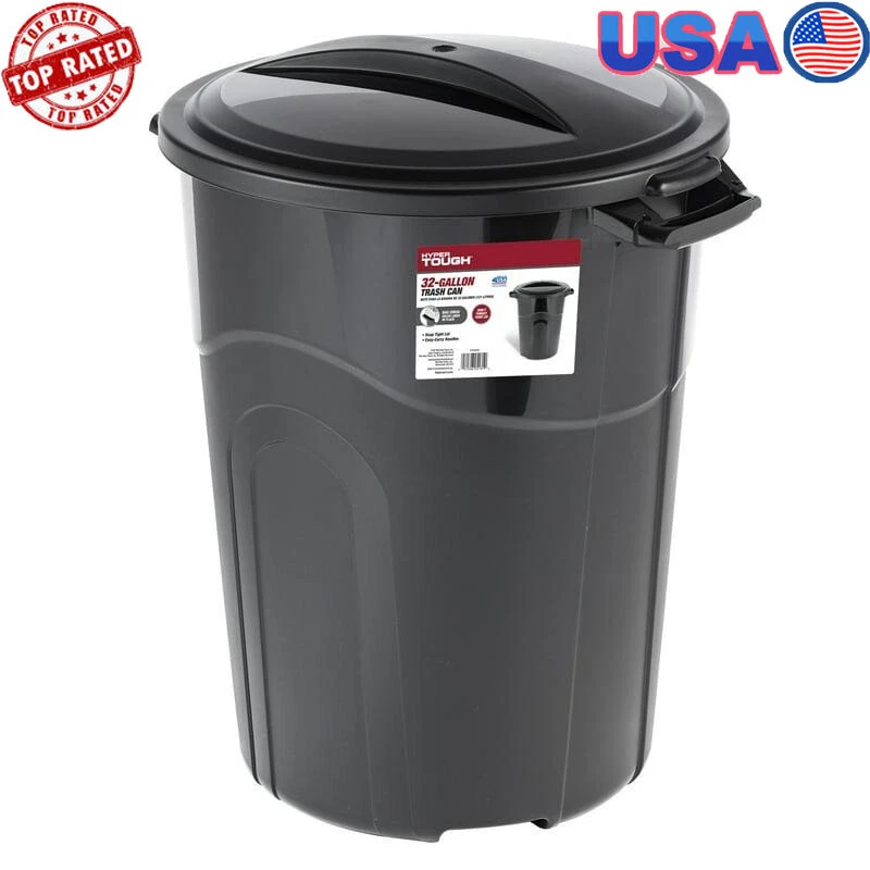 You may also like 3-Burner Gas Stove for Big Outdoor Cooking 30000 BTU 608 Sq in Cooking Space Red 448.86 USD Free shipping Ultra Light Flexible Quarter Inch 100 Ft Air Hose Perfect Roofers Contractors 49.05 USD Free shipping Heavy Duty Carport Canopy Extra Large Portable Car Tent Garage W/Roll-Up Windows 329.17 USD Free shipping Folding Luggage Cart Transport Moving Cart Hand Truck, Black, 75lbs Capacity 33.06 USD Free shipping 6 Piece Plastic 192 In Super Wide Baby Gate Play Yard 2 In 1 Ages 6 24 Months 79.79 USD Free shipping Commercial Lightweight Backpack Baggged Vacuum Cleaner for Carpet & Hard Floors 421.94 USD Free shipping Beveled Mirror Medicine Cabinet 12 X 36 In Frameless Durable Plastic Adjustable 76.12 USD Free shipping Rolling Sewing Machine Storage Transport Tote Triangles W/ Wheels Clear Pockets 63.84 USD Free shipping 12V UltraSafe Portable Lithium Jump Starter Car Battery Booster Pack Powerbank 432.83 USD Free shipping Professional Compact 120V Bench Grinder Sharpenern Garage All Chainsaw Chains 282.14 USD Free shipping Bread Box Steel Fingerprint Proof 21 X 11 X 8 In Handy Large Capacity Durable 77.75 USD Free shipping Grind Rail 55 In Long 3 Step Adjustable Height Extra Stability Practice Skate 73.15 USD Free shipping The Hyper Tough 32 Gallon Heavy Duty Plastic Garbage Can with included lid is heavy duty and perfect for your everyday waste needs. Recommended bag usage size is 33 gallon. This trash can is designed with sturdy pass through handles at the top and an additional hand groove on the bottom of the container. These features make moving this heavy duty injection molded trash can easier than ever. Attach the included lid with the predrilled holes. . The sturdy lid has a click lock, securing it tightly to the container. This waste basket is perfect for the deck, patio, garage, or office. Hyper Tough 32 Gallon Heavy Duty Plastic Waste Can, Included Lid, Black Load capacity 64 lbs Perfect for use Indoor and Outdoor Product Dimensions - 26. 500 in. L X 22. 000 in. W X 30. 750 in. H Handle groove on bottom Click lock lid Tether hold for lid Smart Vinyl Permanent Sampler Decals Outdoor Projects Easy Use 5 Sheets 6.69 USD Free shipping 5-Cup Drip Coffee Maker Removable Filter Auto Keep Warm Function Easy Operate 14.7 USD Free shipping 66 Quart Wheeled Underbed Storage Box Latching Lid Clear Organizer Space Saving 29.42 USD Free shipping Aluminum Baking Pans W/ Lids 2 Count Ideal Casseroles Desserts Parties Teal New 15.34 USD Free shipping 15lbs Oak & Hickory Lump Charcoal Hot Clean BBQ Flavor Grills Smokers & Kettles 20.57 USD Free shipping EZ Carry 120 Quart Clear Storage Box W/ Handles Stackable Household Organizer US 21.31 USD Free shipping 21 Gallon Drawstring Trash Bags Unscented Leakproof Puncture Resistant 45 Count 12.03 USD Free shipping 2 Slice Stainless Steel Toaster Adjustable Browning Control Wide Slot Easy Clean 29.44 USD Free shipping 4-in-1 Multi-Function Jar Opener Tabs Can Lids Packaging Blade Prep Solutions US 18.05 USD Free shipping Paper Napkins White 400 Count Big Celebrations Bounty Napkins Family Dinners New 9.39 USD Free shipping 2-Slice Retro Toaster W/ 7 Browning Settings Bagel & Waffle Function in Black US 28.32 USD Free shipping Rechargeable Cordless Handheld Vacuum W/ Attachments USB Charging Lightweight US 29.27 USD Free shipping