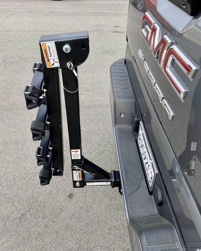 Brand New & Shipped for free via FedEx/ UPS. Securely transport 4 bikes Swing down feature allows easy access to rear of vehicle Fits 2 inch receivers Powder coated to resist rust and corrosion. Rigid all steel construction. Includes reflector for added safety Adjustable bike cradle with hook and loop straps. Comes with hitch pin Not for use on RV's, campers and fifth wheels Towing Capacity (lb.):150