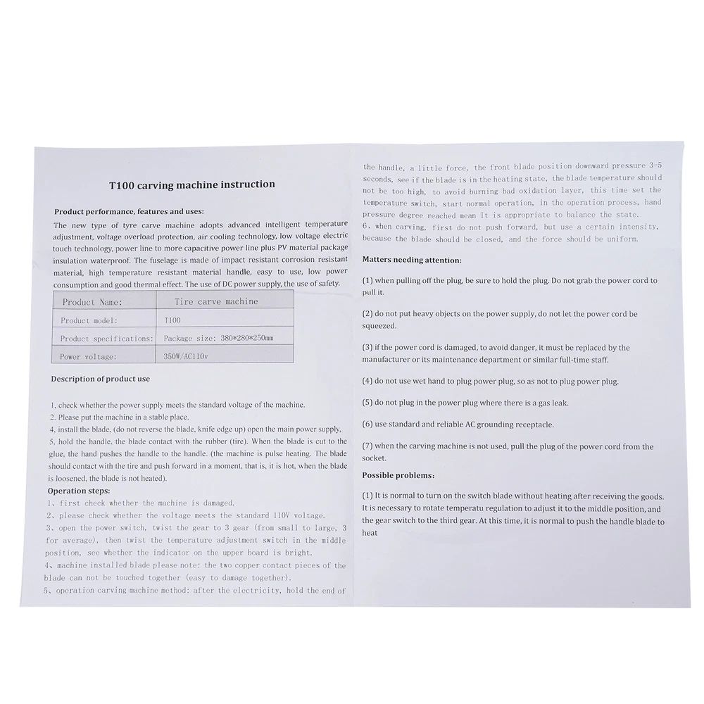 400W Tire Groover Machine Car Truck Tyre Regroover Tire Cutter Grooving Tool USA Performance Characteristics: The control box of this machine adopts an advanced microcomputer temperature control system, and the body adopts anti-impact and corrosion-resistant materials, which is convenient to use, low power consumption and good thermal effect. Use 24v DC power supply, safe to use. After setting the temperature, the machine keeps the temperature at the required temperature. Engraving pattern: can be: U-shaped, V-shaped, etc. Suitable for: deepening the tread pattern, retreading old tires, etc. Carving pattern specifications: width 3-20mm, depth 7-16mm, with blade heating system, making rubber cutting easy and free. Specifications: Input Power: 110V/60Hz Maximum power: 400W Heavy Duty 400W Truck Tire Groover Rubber Regroover Cutter Grooving Machine 110V 400W Tire Groover Machine Car Truck Tyre Regroover Tire Cutter Grooving Tool USA Performance Characteristics; The control box of this machine adopts an advanced microcomputer temperature control system, and the body adopts anti-impact and corrosion-resistant materials, which is convenient to use, low power consumption and good thermal effect. Use 24V DC power supply, safe to use. After setting the temperature, the machine keeps the temperature at the required temperature. Engraving pattern : can be: U-shaped, V-shaped, etc. Suitable for: deepening the tread pattern, retreading old tires, etc. Carving pattern specifications: width 3-20mm, depth 7-16mm, with blade heating system, making rubber cutting easy and free. Specifications; Input Power: 110V/60Hz Maximum power: 400W Host specification: 230×100×102mm (9"×3.94"×4") Tool holder handle: 200×38mm (7.8"×1.5") Movement mode: manual Blade specifications: 2-10mm Gross weight: 6KG Package size: 38×28×25cm Package Content: 1 × Tire Groover Machine Payment Delivery details Terms of sales About us Contact us Payment We accept ebay payment 。 Fees such as import duties, taxes are not included in the item price or shipping costs. These charges are the buyer's responsibility. Delivery details Shipping: 2-9 working days to: USA Terms of sales We maintain high standards of excellence and strive for hundred percent customer satisfaction. Feedback is very important to us. We hope that you contact us immediately before you give neutral or negative feedback, so that we can address your concerns. It is impossible to address issues if we do not know about them! About us Your satis faction is our ultimate goal. We work hard to earn your trust and future business. Our certified technicians have tested each item before shipping. The unit comes with 1 year limited warranty on all manufacturing defects. a) If you receive a defective item, you may return it or ask for a discount. Please contact us within 14 days after you receive the package. b) What you returned must be intact and in its original packaging as re? u. Customer is responsible for shipping costs of the returned item. c) We will cover the cost of shipping back t with the shipping rate indicated in the registration page. We will send you a new unit or refund the full payment you paid. Thank you. Contact us Business Hour Business Hour: Monday To Friday: 8:30 AM to 5:00 PM (Beijing China time) Due to time zones, our reply to your questions may not be immediately. But within above working time, we will reply your email within 24 hours. If it's non-workdays, please kindly be patient and wait till Monday. Please contact us with ebay message. Please feel free to contact us if you have any questions. Monday To Friday: 8:30 AM to 5:00 PM (Beijing China time) Due to time zones, our reply to your questions may not be immediately. But within above working time, we will reply your email within 24 hours. If it's non-workdays, please kindly be patient and wait till Monday. Please contact us with ebay message. Please feel free to contact us if you have any questions. * Feature * Creative Design,Durable Material,Beautiful Appearance Brand Unbranded Manufacturer Part Number Does Not Apply Type Tire Groover Machine Manufacturer Warranty 2 Years Input Power 110V/60Hz Maximum power 400W Host specification 230×100×102mm (9"×3.94"×4") Tool holder handle 200×38mm (7.8"×1.5") Movement mode manual Blade specifications 2-10mm Gross weight 6KG Package size 38×28×25cm Other Part Number Tire groover Custom Bundle No Modified Item No Finish Groover Iron Universal Fitment Yes Placement on Vehicle / OE/OEM Part Number N/A