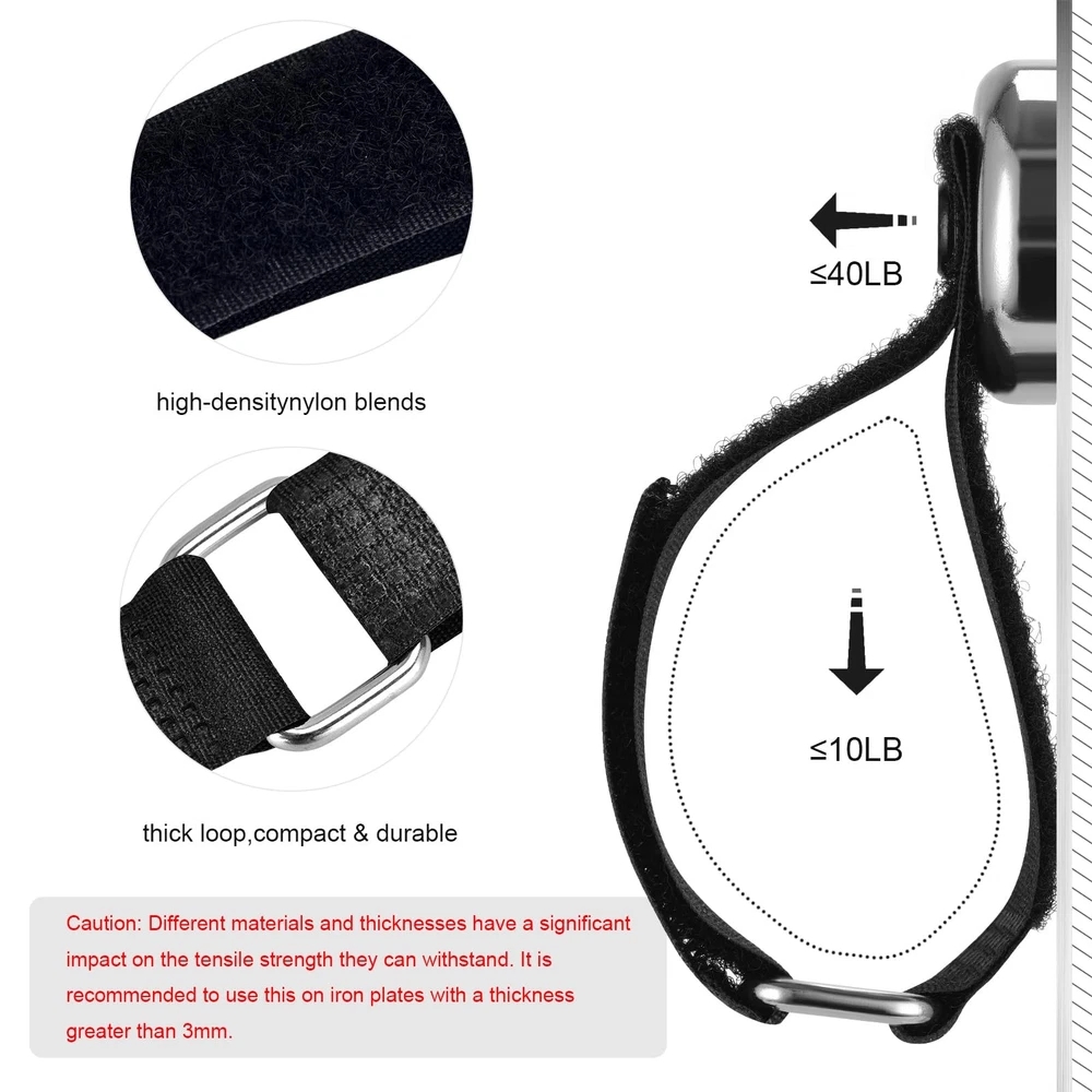 This Magnetic Storage Hooks combines a powerful magnetic suction cup with a high-strength magic hook and loop tape. No drilling is required—simply place it on a steel surface. Installation and removal are extremely easy. High-Quality Magnets: Crafted from premium neodymium iron, this magnetic tool rack boasts exceptional magnetic force, offering a maximum pulling force of 40 pounds. Superior Magic Hook and Loop Tape: The storage band, meticulously crafted from high-density nylon blends and equipped with reusable hook and loop fasteners, exceeds expectations. With adjustable perimeter, it perfectly caters to various needs. Versatile Magnetic Storage Hook: Keep your garage, basement, boat, truck, trailer, pickup, or RV orderly and tidy with the assistance of this heavy-duty magnetic hook. Use it to securely store and arrange a wide array of items, including extension cords, wires, cables, ropes, garden hoses, pipes, shovels, axes, as well as power tools such as drills, fan blades, and chainsaws. This heavy-duty magnetic hanging strap hook is suitable for garage organization、storage and organization、garage storage、garage organizer、tool storage、tool organization、hose organizer and electric cord organizers. It can be used as a magnetic holder, storage hook to hang various items. Satisfaction Guaranteed: Please note that the load capacity depends on the thickness and surface type of the steel plate. We do not recommend using it on steel plates with a thickness less than 0.078 inches (2 millimeters). We have unwavering confidence in our product and provide exceptional customer service. Should you have any questions or concerns, please feel free to contact us. Innovation Design: This heavy duty magnetic hooks comprises a formidable magnetic suction cup and a high-strength storage strap. No drilling required—simply place it on a steel surface. It offers effortless installation and removal. High-Quality Magnets: Crafted from premium neodymium iron, this magnetic tool holder boasts exceptional magnetic force, providing a maximum pulling force of 40 pounds. Superior Storage Straps: The Heavy Duty Magnetic Garage Storage Tool Organizer, expertly crafted with high-density nylon blends and equipped with reusable hook and loop fasteners, surpasses expectations. With an adjustable perimeter ranging from 2.75 inches to 9.5 inches, it flawlessly caters to various needs. Versatile Magnetic Storage Hooks: Keep your garage, basement, boat, truck, trailer, pickup, or RV tidy and well-organized with the assistance of this heavy-duty magnetic hook. Utilize it to securely store and arrange a wide array of items, including extension cords, wires, cables, ropes, garden hoses, shovels, axes, as well as power tools such as drills, fan blades, and chainsaws. Satisfaction Guaranteed: Please note that the loading capacity is contingent upon the thickness and surface type of the steel plate. We do not recommend using it on steel plates with a thickness less than 0.078 inches (2 millimeters). We have unwavering confidence in our product and provide exceptional customer service. Should you have any questions or concerns, please feel free to contact us.