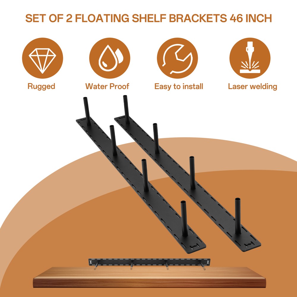 Floating Shelf Bracket, Easy Install, Heavy Duty, Hidden Shelf Support 46 Inch Bullet Points: Selected Material: Using selected high-grade steel material, these 2 floating shelf brackets offer a long-lasting and elegant storage solution. The sturdy construction contributes to the brackets' longevity, while the handsome design adds a touch of sophistication to your space. Advanced Strength: With stunning welding precision and excellent craftsmanship, our set of 2 floating shelf brackets exceed ordinary shelves in durability Wide Application: Seamlessly blend functionality with styles in the living room by using these brackets to mount shelves that serve as chic storage for books, decorations, and more. Favorable Gift: Surprise your loved ones with our set of 2 floating shelf brackets, perfect for decorating any room in the house. A good present for special occasions like birthdays, Thanksgiving, Christmas, and other holidays. Easy Mounting: Create a beautiful ambiance with our set of 2 floating shelf brackets. The installation is cost-effective with clamps and hassle-free, outperforming standalone products in strength. Upgrade your storage game with our heavy-duty blind shelf supports! Crafted with selected materials and excellent craftsmanship, these supports can be used to easily install shelves in your kitchen. Perfect for women who want to enhance their space. Simple installation makes it a breeze to get organized. Properties: color: black Material: steel Product dimensions: 46 x 6 x 3 inches Installation type: Wall-mounted installation Product List: 2pcs*bracket (include accessories: Drill dies, router bits, auger bits, wiring jigs, screws) We accept PayPal payment,PayPal Credit,Credit card or debit card and so on. Payment should be completed within 4 (Four) days of auction closing. Or unpaid dispute will be filed for closing auction. We will leave a positive feedback immediately after payment is received. We appreciate a positive feedback as much as you do. If for some reason there is any issue with the purchase, please contact us prior to leaving feedback, we will be glad to work together and provide a satisfying solution. 1. We ship to your eBay address. Each package will be shipped via FedEx or UPS 2-8 business days with tracking number 2. Please check your shipping address carefully before checkout, it can't be changed if order completed. 3. Shipping within 1 business days once payment completed. Orders placed on weekend will be delay 1-2 days. 4. Please allow 6 business days for delivery to any destinations. 5. As a buyer, it is your duty to pay the tax when you make an order from abroad. Our price does not include taxes, VAT, or other hidden charges. 1. We maintain high standards of excellence FIVE STAR and strive for 100% customer satisfaction! 2. Positive Feedback is very important to us. We hope that you contact us immediately BEFORE you give us neutral or negative feedback, so that we can satisfactorily address your concerns. 3. We promise to offer the best price and high quality products. 1. If you have any questions, please send a ebay message. 2. We will reply within 48 hours of your email. Weekend will be delayed a bit.
