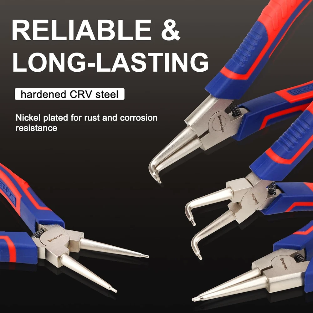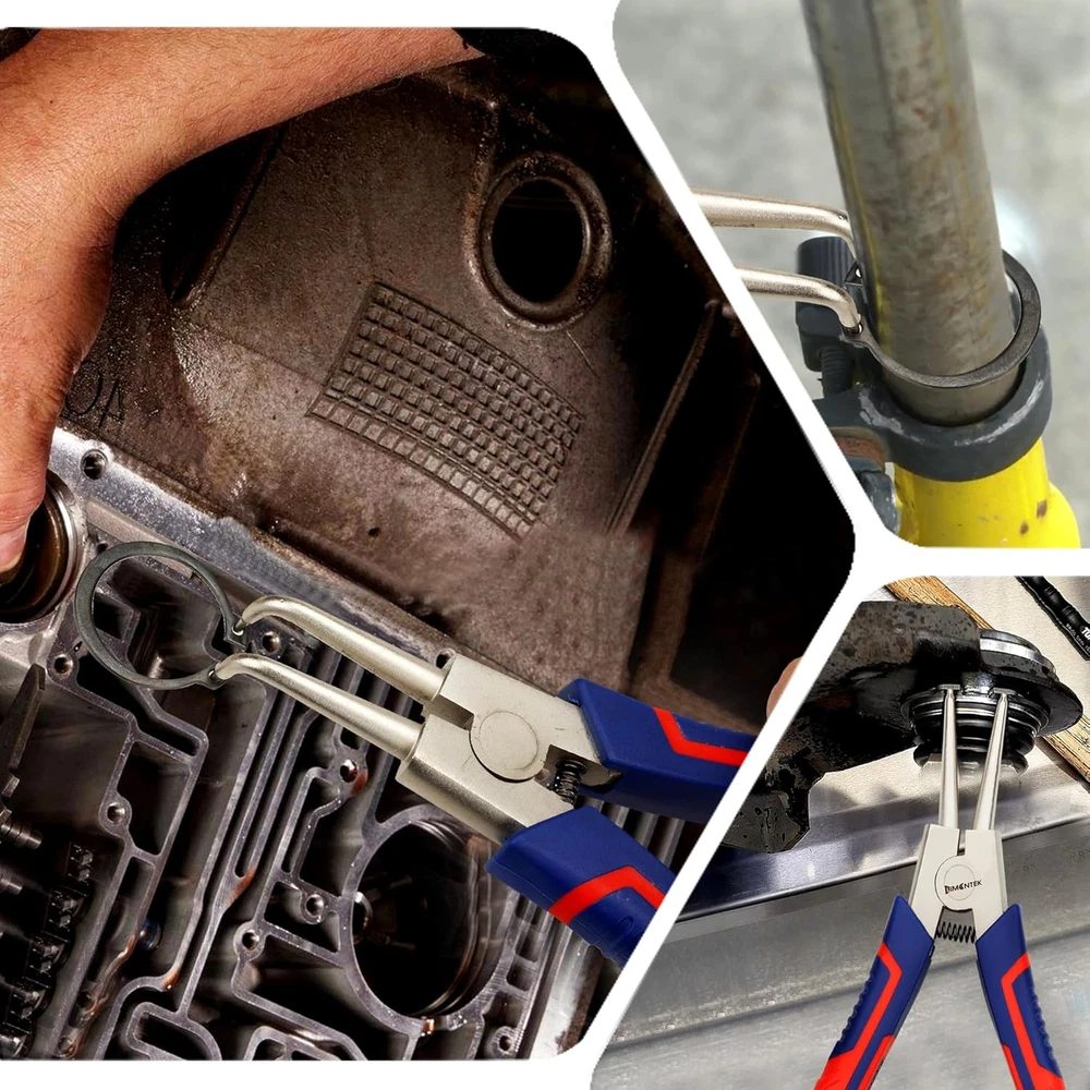 Store New Arrivals Add to Favorite View Feedback Contact Heavy Duty 4Pcs Snap Ring Pliers Set, 7-Inch Internal External Circlip Pliers, Straight Bent Lock Pliers for Ring Remover Retaining with Portable Pouch Description Item model number 1335 Batteries Required? No Material Chromium-Molybdenum Steel Country of Origin China Grip Type Ergonomic Package Dimensions 9.09 x 5.75 x 1.89 inches Item Weight 2.14 pounds Handle Material High Carbon Steel, TPR Batteries Included? No Usage Remove and install snap rings Specific Uses For Product Remove and install snap rings Included Components Internal Circlip Pliers, External Circlip Pliers, Storage Pouch 🔗Premium Material -- Snap ring pliers constructed from high hardness chromium molybdenum steel, heat treated for strength and durability, nickel plated for rust and corrosion resistance. 🔗Professional Craftsmanship -- Circlip pliers with high-precision rounded tips for easy insertion into snap ring holes. Spring-loaded design with automatic handle rebound for easier operation. Ergonomic design for long working hours. 🔗Wide Application -- Heavy duty snap ring pliers set is ideal for removing and installing externally placed retaining rings. It also provides instant holding power and is easy to reposition during assembly, fastening, and gluing work. Widely used in machinery industry, industrial assembly, household appliances, vehicles and other DIY maintenance. 🔗Complete Set --- 7 inch snap ring pliers includes 1 * straight internal snap ring pliers, 1 * straight external snap ring pliers, 1 * 90-degree bent external snap ring pliers, 1 * 90-degree bent internal snap ring pliers. 🔗Easy to Carry --- All tools are stored in a zippered storage pouch for easy organization and convenient storage. A perfect gift for man women. Product Description LIMONTEK MAKE your WORK EASIER and more EFFICIENT SOLID and RELIABLE MATERIAL for LONG TIME USE WIDE APPLICATION ABOUT US We offer the best prices around on high quality products. Our E-store includes media such as books, movies, music and games while offering electronics, toys, sporting apparel, clothing, tools, general home, garden items and more. SHIPPING We are always working hard to ensure your package arrives as soon as possible. Please understand that some factors like weather, high postal traffic, and the performance of shipping companies are outside of our control. We offer free shipping to the lower 48 states and ship within 2 business days of payment, usually sooner. We do not accept P.O. Boxes. Please provide a physical address. For shipping outside of the continental USA, we only use eBay's Global Shipping Program.The item is shipped to KY and then sent to the rest of the world. International customers are responsible for all duties and taxes. Continue to check out in order to calculate costs for shipping the item to your country. Messages regarding eBay's Global Shipping Program MUST be directed at eBay EXCLUSIVELY. RETURNS We offer a 30-Day Return Policy on items which you are not completely satisfied with. You have the option for a full-refund or an exchange of the item. No returns are available on items shipped outside of the USA. PAYMENT We accept PayPal. CONTACT US This page content is yet to come Please ad us to your favorite seller and visit again later Thank You CUSTOMER SATISFACTION We try our very best to make sure every customer is completely satisfied. If there's a problem, message us! We're happy to help. WE ACCEPT Copyright © 2021 AutoDS. | All Rights Reserved