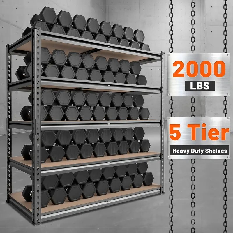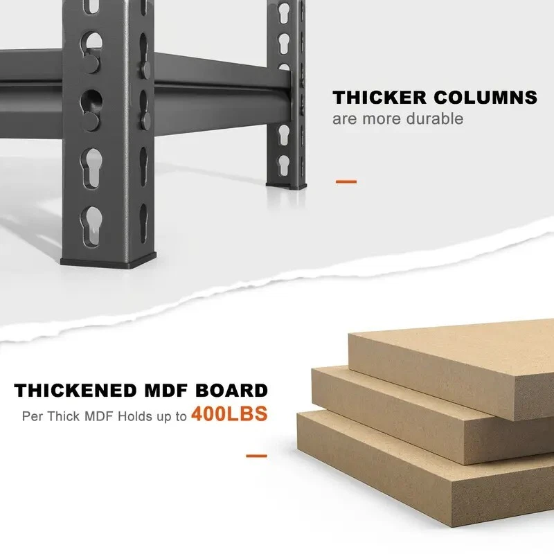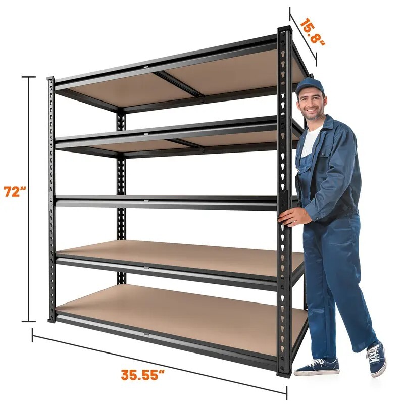 Material: Metal Shelf Type: Cubby shelf [72 "H x 35.5 "W x 15.8" D Multipurpose storage shelves heavy duty]The garage shelves heavy duty shelving with perfect size is suitable for garage, pantry, closet, kitchen, warehouse, basement, living room, office, etc. The 5 tier metal shelving unit and storage shelves heavy duty not only expands your storage space, makes your home clean and orderly, is your best choice-best shelf organization for business. [2000LBS Capacity Garage Storage Shelves Heavy Duty]The garage shelving heavy duty shelving has thickened steel legs. Made of high-quality metal frame+high-quality thicker boards,so each shelf can hold up to 400 lbs, with a total bearing capacity of 2000 lbs, which makes 5-tier garage shelving unit more stable, solid and more stuff can be stored. [Adjustable Garage Shelf to Meet Different Needs]You can use your imagination to customize your own space. Metal shelving for garage storage is designed with adjustable connectors. The height of each layer is not only adjustable by moving the crossbar up or down to meet the different heights of varied objects needed, but also divided one shelf into two individual shelves, the link is able to provide more stability. [Easy Assemble within 10 minutes]The heavy duty metal shelves for storage garage shelves adopts a special interlocking design to make it quickly assembled. To help you quickly assemble, we offer you a hammers and a pair of gloves. There is no nuts or bolts required, you can quickly assemble every stand alone sturdy shelves for storage within 10 minutes alone. [Best Gift & Professional Support ]There are many parts in the package, Please tell us the first time if meet the case of missing parts and assembly. You don't have to worry about scratches on the floor of metal storage rack, which is perfect choice for gift-giving or housewarming. If you have any questions about our products, please feel free to keep our customer service.