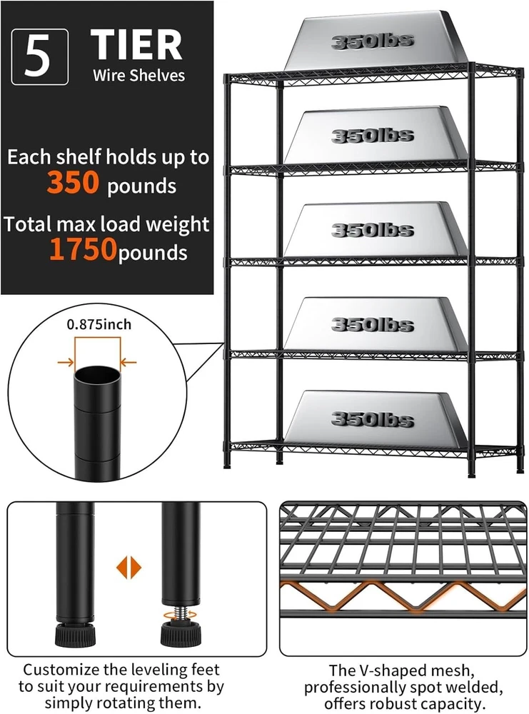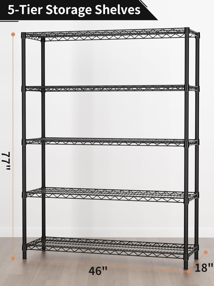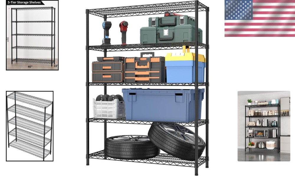 Heavy Duty Metal Storage Shelves 5 Tiers Adjustable Utility Rack 1750LBS ‹ › ‹ › ‹ › ‹ › ‹ › ‹ › ‹ › ‹ › ‹ › ‹ › ‹ › Heavy Duty Metal Storage Shelves 5 Tiers Adjustable Utility Rack - 1750LBS Capacity Features: Constructed from strength steel tubes, designed in an innovative 'spider web' form for enhanced stability. Remarkable static load capacity of up to 1750 lbs, ensuring it can handle your heaviest items with ease. Specially coated to resist water, rust, and corrosion – perfect for kitchens, bathrooms, and any storage area. Height-adjustable shelves in 1-inch increments, allowing customizable space for all your storage needs. Easy assembly that requires no tools - transform your space in just 15 minutes while enjoying a fun DIY experience. Designed with adjustable feet, accommodating uneven surfaces for flawless stability. Benefits: Sturdy construction meets versatility, making this rack suitable for a variety of spaces: home, garage, kitchen, and more. Keep your items organized while maximizing vertical storage space, ideal for narrow or corner spaces. Easily adjustable to accommodate items of varying heights while simplifying your storage solutions. Protection against rust and corrosion ensures longevity and ease of maintenance. Responsive customer support available within 24 hours for any assembly concerns or missing parts. Why choose our Heavy Duty Metal Storage Shelves? Transform your cluttered spaces into organized havens with our Heavy Duty Metal Storage Shelves. Crafted from materials, this adjustable utility rack is designed to carry a massive load while providing versatility in storage. Ideal for kitchens, bathrooms, or any area where space is at a , its innovative design ensures that every inch is utilized effectively. Don’t let disorganization overwhelm you – elevate your storage solutions today with this durable shelving system. Order now and enjoy a beautifully arranged space that reflects your modern lifestyle! Shipping Free & Fast Shipping - We offer free shipping to most of the USA with a normal delivery time of 3-7 days. However, due to the current situation, additional delivery time (up to 3 weeks) may be required for some items. Alternative Carriers - We may use alternative carriers (e.g. USPS, FedEx, UPS, etc.) to ensure your package arrives safely and on time. Due to the use of multiple carriers, we are unable to provide a tracking number automatically. Handling Time - Orders are processed and shipped within 1-2 business days of receiving cleared payment. Shipping Restrictions - Shipping to Alaska, Hawaii, Puerto Rico, Guam, and other US territories may incur shipping charges or delivery restrictions. Please contact us before ordering, or your order can be refunded/cancelled. State Restrictions - There may be restrictions based on your state of purchase. For example, certain items may not be shipped to California due to state regulations. Contact for Tracking Updates - If you require tracking updates or have any concerns about the delivery of your order, please feel free to contact us, and we will be happy to assist you. Return 30-Day Hassle-Free Returns - We want you to be completely satisfied with your purchase. If you are not, you can return the item within 30 days of receiving it for a full refund or exchange. Easy Return Process - To start a return, simply contact us and we will provide you with a prepaid return shipping label and detailed instructions. Restocking Fee - There are no restocking fees for returns. However, the buyer is responsible for return shipping costs if the return is not due to a seller's error. Refund Processing Time - Refunds will be processed within 5 business days of receiving the returned item in its condition. Payment We accept all major credit cards, PayPal, and Apple Pay for your convenience. Your payment information is secure and encrypted to ensure a safe and seamless transaction. Please complete your payment within 3 days of purchase to avoid any delays in shipping. Feedback Your feedback is extremely important to us. We strive to provide the best products and customer service possible. If you are satisfied with your purchase, please take a moment to leave us a positive review. If you have any concerns or issues with your order, please contact us before leaving negative feedback. We are committed to resolving any problems and ensuring your satisfaction. Contact Us If you have any questions or concerns, please feel free to out to our customer support team. You can contact us through the eBay messaging system. We are available Monday to Friday, 9:00 am to 5:00 pm EST, and we will do our best to respond to your inquiry within 24 hours. Buy it now and enjoy a pleasant shopping experience! Unit Quantity: 1750LBS Material: Metal,Carbon Steel Room: Bathroom,Garage,Kitchen,Laundry Room,Closet Mounting: Free Standing,Floor Mount Suitable For: Indoor Care Instructions: Wipe with Damp Cloth Item Height: 77 Inches Item Length: Heavy Duty Storage Shelves Item Width: Heavy Duty Storage Shelves Type: Storage Unit Number of Shelves: 5 Number of Drawers: 0 Number of Compartments: 0 Number of Items in Set: 6 Capacity: 1750 lbs Item Weight: Not specified Number in Pack: 1 Color: Black Size: Large Scent: Not applicable Shape: Rectangle Style: Modern Finish: Painted Unit Type: Unit