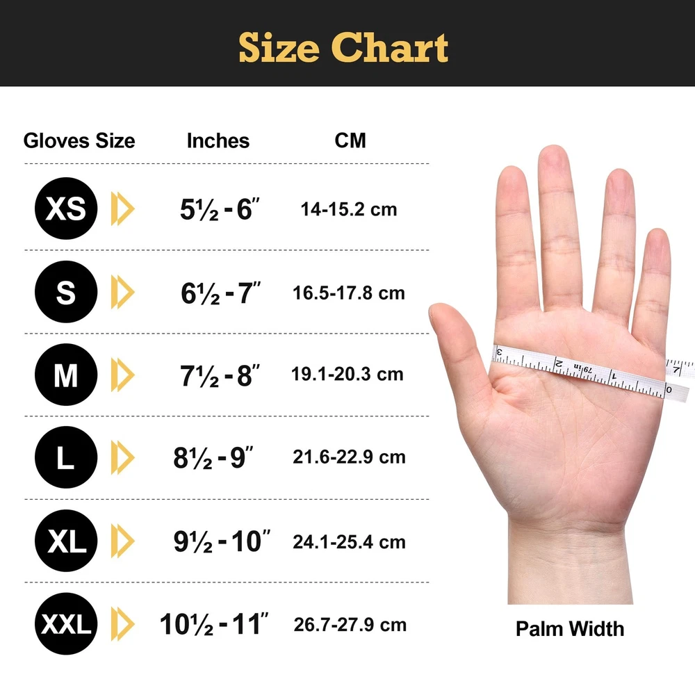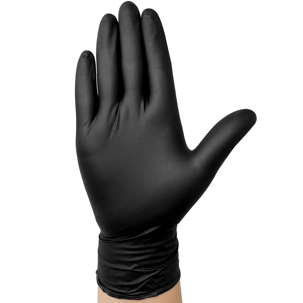 is a fast-growing brand of premium heavy-duty disposable gloves and other personal health protection supplies. is committed to making the protection of your health more accessible and affordable. Protecting your hands is always essential whether you're a medical professional, caregiver, technician, food prepper, worker or mechanic. We leveraged advanced technology and a global supply chain to provide protective gloves without limiting your work or burning your budget. HD20K series black nitrile exam gloves are your best choice for medium-to-heavy-duty applications such as emergency care, animal handling, mechanics, auto repair, janitorial, painting, plumbing, oil changes, manufacturing, etc. They're made of 6-mil thick premium nitrile and measure 9.5" long from fingertips to cuff. The fingers are textured with extra gripping power, even in wet or greasy jobs. The black color adds a professional appearance and conceals dirt and stains. HD20K nitrile exam gloves are powder-free and latex-free but provide enhanced puncture and chemical resistance than latex gloves and even standard nitrile gloves. HD20K disposable nitrile exam gloves are available in small, medium, large, extra large (XLarge or XL), and XX-L sizes. They're ambidextrous with the same fit for both hands of adult men or women. They're packaged in a convenient 50-ct or larger 100-ct dispenser box, and can be purchased in 1 bulk case of 20 50-ct or 10 100-ct boxes (1,000 gloves total in a case). Besides HD20K black nitrile gloves, also offers other color options, including Black, orange, and green heavy-duty nitrile gloves. *Size Guide: HD20K series black nitrile gloves have a snug fit. If you are used to a looser fit, we recommend you go one size up. HEAVY-DUTY: Our 6-mil thick nitrile gloves are more chemical-resistant & puncture-resistant than latex gloves and vinyl gloves, providing enhanced hand protection against chemicals, liquids, greases, & sharp objects. MEDICAL EXAM GLOVE: HD20K black nitrile gloves passed rigorous medical-grade quality tests, and can be used in various medical examinations, health care, and laboratory tasks that require a higher level of quality assurance. LATEX-FREE: These disposable gloves contain no natural rubber latex, and are non-irritating and hypoallergenic, offering superior strength and snug comfort - perfect for users with allergic skin reactions. FOOD-SAFE: HD20K disposable rubber gloves are rated food-grade and can be used as disposable food gloves, cooking gloves, food handling gloves, or food service gloves. The textured fingers add extra slip resistance in wet or greasy conditions. MULTIPURPOSE: Our non-latex gloves can be used for various medical, industrial, and household tasks, e.g., cleaning, janitorial, cooking, food prep, tattoo, oil change, auto repair, mechanics, barber, BBQ, painting, plumbing & animal handling.