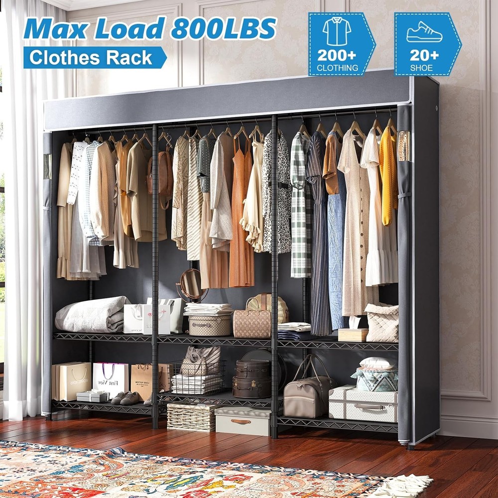 Product Description The video showcases the product in use. The video guides you through product setup. The video compares multiple products. The video shows the product being unpacked. hero-video Merchant Video Heavy Duty Clothes Rack with Cover Holds 800 LBS, Sturdy & Portable Do you need a cabinet-style covered clothes rack that does not take up too much space but can store different items in partitions? Freestanding Clothing Racks For Hanging Clothes -- Makes Storing Easy Creative Design, DIY Your Own Clothes Racks! Clothing Rack with Cover is Made of High-Quality Fabric On Aug 6, 2025 at 21:02:31 PDT, seller added the following information: