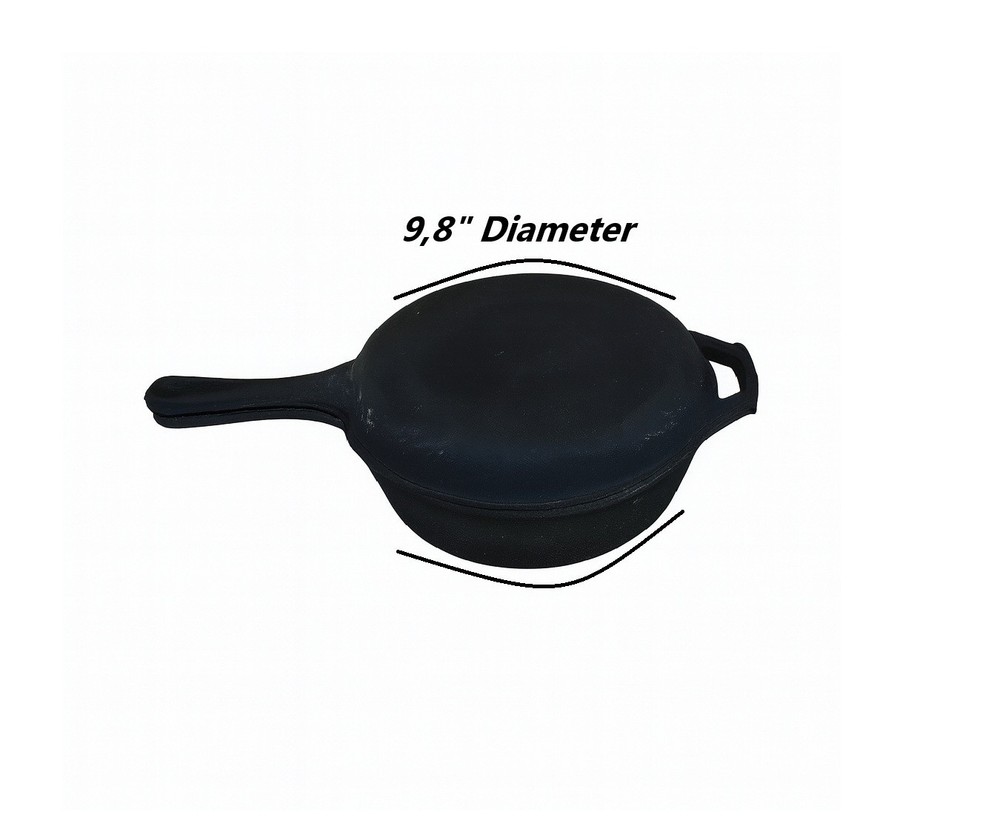 Cast Iron Dutch Oven 9.8" with Lid – 5 kg This high-quality cast iron Dutch oven is built for durability and even heat distribution. Perfect for cooking in clay ovens, on the grill, or directly over an open flame. Its long handle and sturdy cast iron lid make it practical for a wide range of recipes. Features: Material: Premium Cast Iron Color: Black Capacity: 5 kg Shape: Oval Includes: Cast Iron Lid Finish: Non-Stick Use: Oven and Grill Safe Not Dishwasher Safe Year Manufactured: 2024 Dimensions: Diameter: 9.8 in (25 cm) Total Length with Handle: 16.1 in (41 cm) Height: 4.7 in (12 cm) Thickness: 0.276 in (7 mm) Benefits: Retains and distributes heat evenly Perfect for roasts, stews, bread, and more Heavy-duty and long-lasting for frequent use Ideal for camping, outdoor cooking, and home kitchens