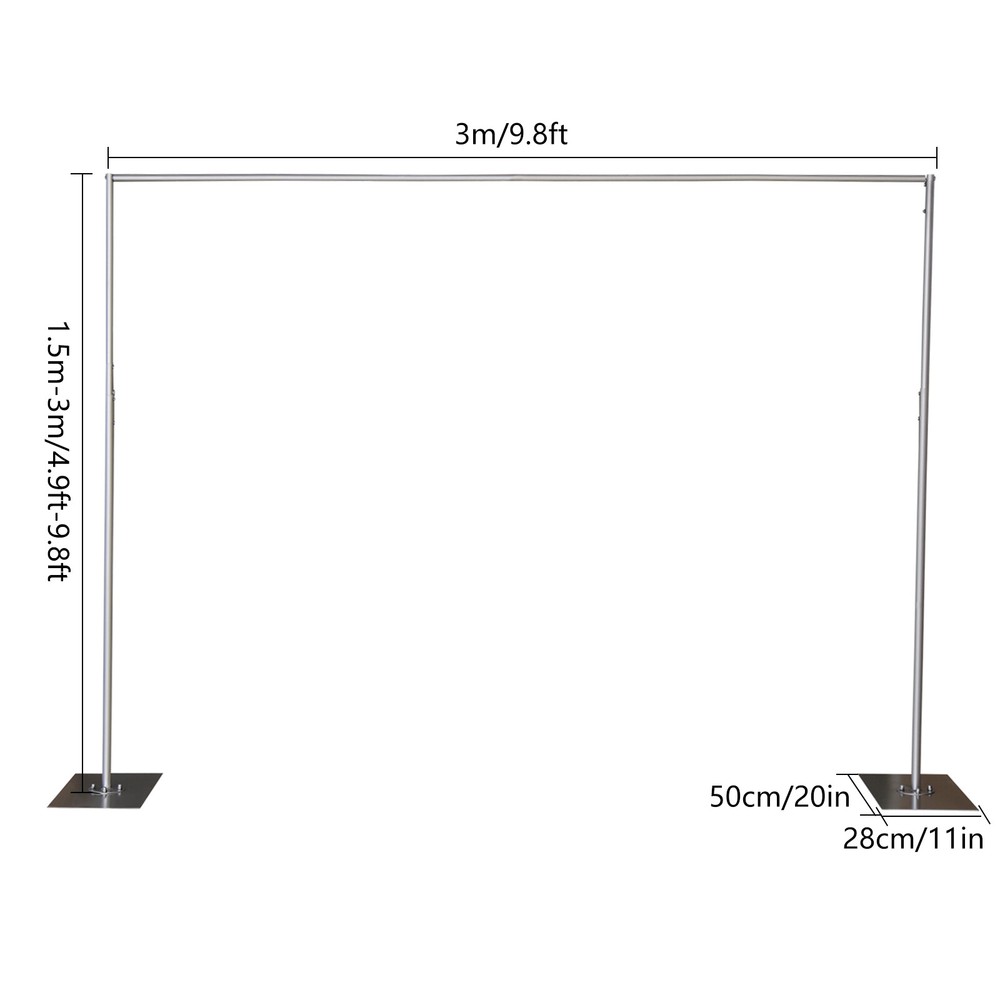 Application The Stand Is Suitable for Weddings, Hotels, Parties, Photography, Etc. an Elegant and Stylish Wedding Stand Can Decorate the Venue Very Well. Specification Material: Steel Pipe Color: Silver Style: Modern Process: Baking Painting Max. Load-bearing Capacity: 30kg/66lbs Gross Weight: 10kg/22.04lbs Net Weight: 9kg/19.84lbs Package Size: 185*5*31cm/72.83*1.96*12.2in Product Size: 3*1.5-3m/9.8*4.9-9.8ft Base Size: 50*28cm/20*11in Package Included 9*Pipes(Two with Flanges) 2*Bases All Accessories Needed for Installation Heavy Duty Pipe Drape Kit Backdrop Support w/ Metal Steel Base-Height Adjustable DESCRIPTION Description The Classy Square Shape and Silver Construction of the Heavy Duty Backdrop Stand Will Give You a Robust Base for an Epic Background for Celebration. Decorate It with Flowers, Greenery, Garlands, Led Lights, Tulle Swags, Silk Flowers, and Vines to Make Breathtaking Backdrops for Your Special Day. Application The Stand Is Suitable for Weddings, Hotels, Parties, Photography, Etc. an Elegant and Stylish Wedding Stand Can Decorate the Venue Very Well. Specification Material: Steel Pipe Color: Silver Style: Modern Process: Baking Painting Max. Load-bearing Capacity: 30kg/66lbs Gross Weight: 10kg/22.04lbs Net Weight: 9kg/19.84lbs Package Size: 185*5*31cm/72.83*1.96*12.2in Product Size: 3*1.5-3m/9.8*4.9-9.8ft Base Size: 50*28cm/20*11in Package Included 9*Pipes(Two with Flanges) 2*Bases All Accessories Needed for Installation Key Features Frame Your Wedding : the 9.8*9.8 Feet Size of the Stand Makes It Perfect As a Backdrop for Weddings, Birthday Parties, and Other Occasions. a Decorative Stand Can Add Extra Color, Elegance, or Flair When Framing the Most Important Moments of That Most Important and Memorable of Days! Photography Background Frame : with a Solid Structure and Shiny Silver Surface, the Stand Is Perfect for Supporting Any Background or Banner to Set up Different Backgrounds. It Is Suitable for Photo Studio, Home, and Professional Studio Use. Exquisite Craftsmanship : the Heavy Duty Backdrop Stand Adopts Exquisite Baking Paint, Which Not Only Enhances Its Sturdy, Durable and Wearable Characteristics but Also Beautifies Its Appearance. DiyFun : the Heavy Duty Backdrop Stand Allows You to Give Full Play to Your Imagination and Creativity by Decorating It with Flowers, Green Plants, Balloons, Gauze, Garlands, Etc. to Make It a Unique Backdrop. This Will Not Only Let You Experience the Fun of Handicrafts but Also Reap a Sense of Accomplishment. Plant Stand : You Can Place This Stand Where Climbing Plants Are Planted, Which Will Help the Plants to Grow. the Lush Plants That Surround the Stand Will Form a Beautiful Plant Arch That Will Decorate Your Garden Nicely. High-quality Material : This Heavy Duty Backdrop Stand Is Made of High-quality Steel Pipe, Which Is Strong and Durable Not Easily Deformed. Easy to Carry : the Heavy Duty Backdrop Stand Is Designed to Be Removable. the Dismantled Parts Will Not Take up Too Much Space, Which Is Easy to Store and Carry. Easy to Install : the Simple and Lightweight Structure of the Heavy Duty Backdrop Stand Makes It Very Easy to Install. You Just Need to Assemble the Metal Frame Simply to Get a Delicate and Romantic Stand. Protective Packaging : the Product Is Carefully Packed in a Cardboard Box, Which Can Well Cushion the Impact During Transportation. Protective Packaging Protects the Product to Reach You in Good Condition. Adjustable Height : You Can Easily Adjust the Height of the Stand from 4.9 Feet to 9.8 Feet by Simply Turning the Screw on the Steel Pipe to Adapt to Different Shooting Needs. Customer Service : We Aim to Provide Quality Products and Services. If You Have Any Problems, Please Feel Free to Contact Us. We Will Reply and Solve the Problem for You As Soon As Possible. Details Stable Bases : the Wider and Longer Base (20*11 Inches) Provides Enough Support for the Stand so That It Is Not Easy to Tilt, Which Makes It Suitable Not Only for Indoor but Also for Outdoor Use Such As the Beach and Lawn. Flanges : the Base and the Metal Pole Are Connected and Fixed by Flange to Enhance Stability and Support Ability. Notes Please Allow the Slight Color Difference Caused by the Shooting Light and 1-3cm Error Due to Manual Measurement. Please Make Sure You Do Not Mind Before You Order. DESCRIPTION 2 Welcome to our store for shopping. Our store has a wide range of product categories for you to choose from. Welcome to click on our store to make a purchase or consult us, and we will recommend the products you need.?? ↓↓↓ Welcome Payment Delivery details Terms of sales About us Contact us Payment We accept ebay payment 。 Fees such as import duties, taxes are not included in the item price or shipping costs. These charges are the buyer's responsibility. Delivery details Shipping: 2-9 working days to: USA Terms of sales We maintain high standards of excellence and strive for hundred percent customer satisfaction. Feedback is very important to us. We hope that you contact us immediately before you give neutral or negative feedback, so that we can address your concerns. It is impossible to address issues if we do not know about them! About us Your satis faction is our ultimate goal. We work hard to earn your trust and future business. Our certified technicians have tested each item before shipping. The unit comes with 1 year limited warranty on all manufacturing defects. a) If you receive a defective item, you may return it or ask for a discount. Please contact us within 14 days after you receive the package. b) What you returned must be intact and in its original packaging as re? u. Customer is responsible for shipping costs of the returned item. c) We will cover the cost of shipping back t with the shipping rate indicated in the registration page. We will send you a new unit or refund the full payment you paid. Thank you. Contact us Business Hour Business Hour: Monday To Friday: 8:30 AM to 5:00 PM (Beijing China time) 