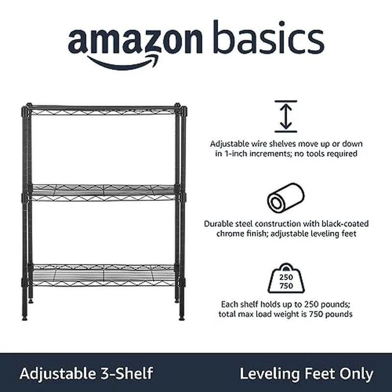 2 PCS Underbed Storage Box Large Foldable Under Bed Clothes Organizer Dust-proof 50.47 USD Free shipping Children Multi-Bin Toy Organizer Shelf with Storage Bins Easy Assembly Grey/Blue 44.15 USD Free shipping Overhead Bike Hoist Pulley System 100lb Garage Storage Easy Install for Bicycles 53.26 USD Free shipping Natural Wicker Storage Baskets Handwoven Organizing Bins W/ Handles 2-Pack New 50.47 USD Free shipping 4-Tier Bathroom Space Saver Shelf over the Toilet Storage Shelf Organizer Rack 48.07 USD Free shipping Heavy Duty Power Tool Organizer Wall Mount Sturdy Steel 4 Anchors 100lb Capacity 37.82 USD Free shipping Bamboo Drawer Organizer Box Set 5 Individual Storage Containers for Kitchen 39.2 USD Free shipping Clear Stackable Storage Drawers Organizers Space-Saving Home Storage Bins New 50.47 USD Free shipping Boltless Shelving Hook Organizer Kit 7-Pcs Adjustable Storage Hanging Hooks US 44.15 USD Free shipping Bamboo Laundry Hamper W/ Rope Handles Removable Storage Bag Clothes Basket US 43.01 USD Free shipping Wall Mounted Stainless Steel Towel Rack Bathroom Organizer Towel Holder Rack US 40.35 USD Free shipping 4 Pack Natural Seagrass Baskets Rectangular Storage Organizer Bins W/Lids Brown 51.74 USD Free shipping About this item 3 shelf wire rack offers handy storage space and easy access to tools and supplies Durable steel construction with a Black finish; each shelf holds up to 250 pounds, evenly distributed; 750 pound total weight capacity Adjustable shelf height in 1-inch increments for easy customizing; 4 leveling feet for stability Multi-purpose versatility; use in a garage, laundry room, kitchen, playroom, or other living or work space Assembles quickly and easily; no tools needed Product Dimensions: 23. 2 x 13. 4 x 30 inches (LxWxH) Material:Alloy Steel Color:Black Special Feature:Adjustable Product Dimensions:13. 39"D x 23. 19"W x 30"H Shelf Type:Tiered Shelf You may also like Frost Locking & Stacking Utility Box Tool Box Plastic 11.5" x 5.06" x 7.25" US 10.26 USD Free shipping Butter Powder 2 Lbs 4 Oz No.10 Can for Food Storage Emergencies Survival Camping 30.51 USD Free shipping Tear-a-Square Paper Towels 12 Double Rolls White for Kitchen Bathroom US 20.03 USD Free shipping Heavy Duty Cat Litter Scoop Durable Metal Cat Litter Scoop with Long Handle 16.62 USD Free shipping Soft Fluffy Chunky Knit White Crochet Chenille Throw Blanket Handmade Cozy New 64.49 USD Free shipping Embroidered Leaves Chenille Oblong Decorative Pillow 14x22 Fall Accent New 18.26 USD Free shipping Orbit Irrigation Brass Adjustable Impact Telescoping Tripod Lawn Sprinkler NEW 37.3 USD Free shipping Artificial Fall Floral Arrangement Tabletop Brown Glass Vase Lifelike Decor New 15.23 USD Free shipping Floating Pellets Fish Food Nutritionally Balanced Diet 6 oz. US 11.32 USD Free shipping Elegant Flocked Pumpkin Rustic Stem Autumn Decorations Centerpiece Fall Decor US 8.0 USD Free shipping 8ft Giant Cute Blow Up Snowman Inflatables Christmas Outdoor Yard Decoration US 54.91 USD Free shipping 11 Gallon Trash Can Plastic Lift Top Kitchen Trash Can Container With Lid Black 16.53 USD Free shipping