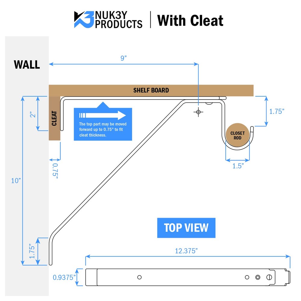 Projection: 12-1/4” from Mounting Surface Complete with Screws Adjustable shelf bracket Available in White & Black Finish See Spec image for measurement details