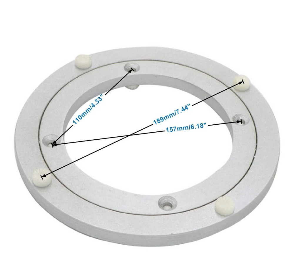 Made of high-quality aluminum alloy materials, this lazy susan hardware is sturdy. Diameter: 200mm/8", Thickness: 10mm/0.4" Equipped with anti-skid rubber feet which is non-slip and convenient to use. LOAD CAPACITY - 40kg Note: Table top not inclueded Use this lazy susan base for your woodworking or other DIY projects, as it is versatile and adaptable to many uses