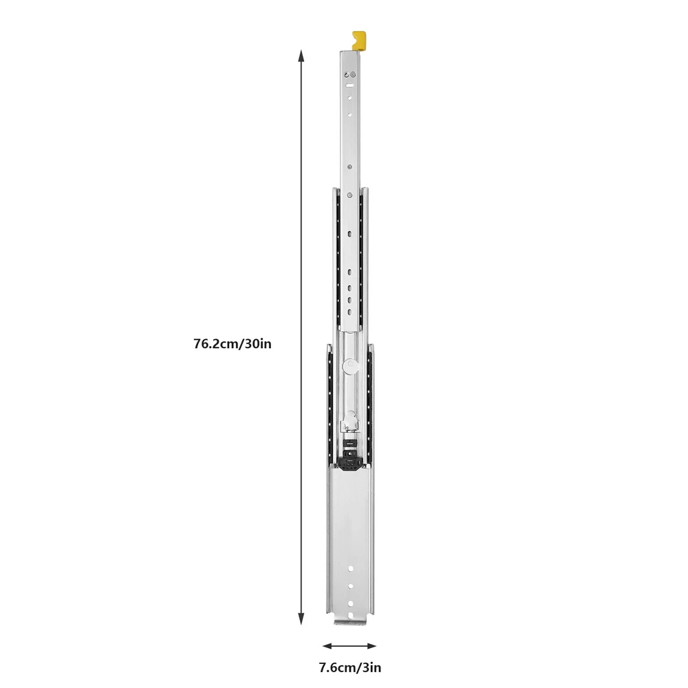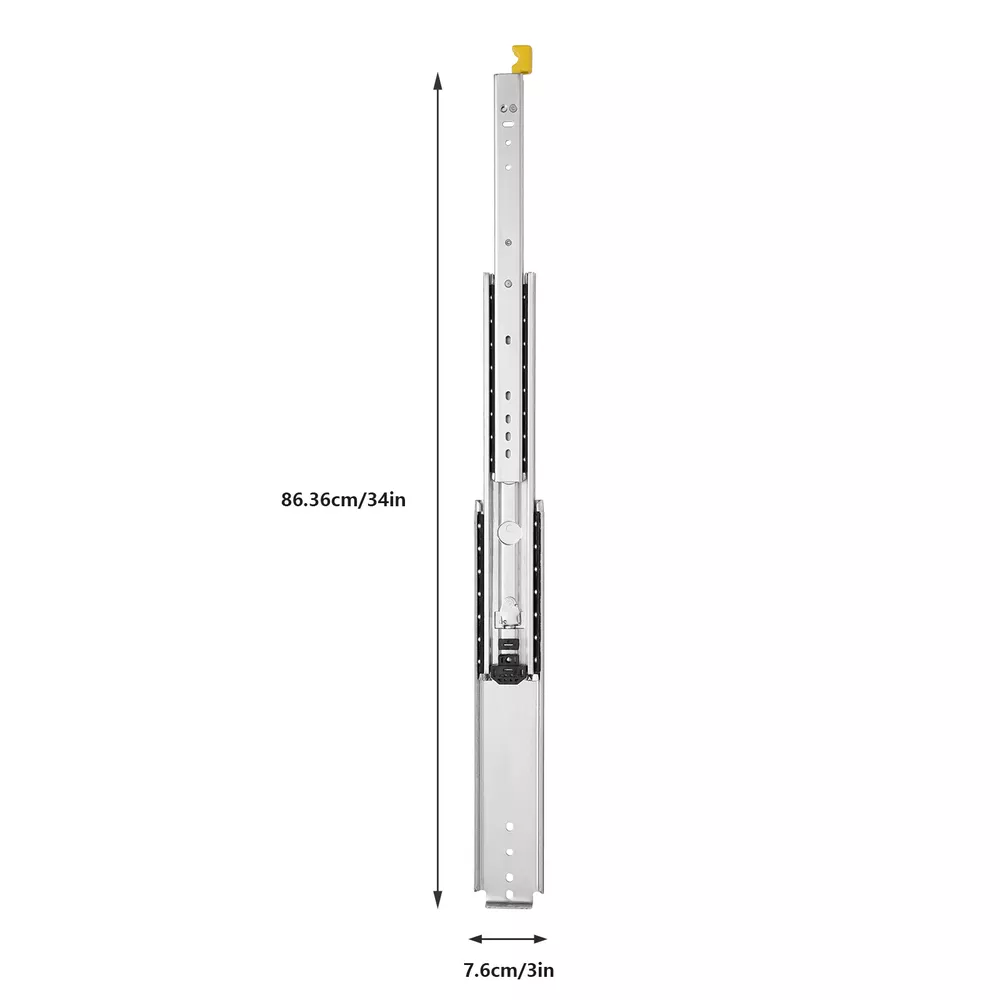 Description This heavy-duty drawer slide is made of cold-rolled steel Q235 which is durable and has a long service life. Cold-rolled steel has good corrosion resistance and heat resistance, so it won't rust or jam under proper use. This heavy-duty drawer slide has double rows of solid steel balls to ensure a smooth and silent push and pull. Specification -Style: Simple, Modern -Material: Cold Rolled Steel Q235 -Color: Silver -Quantity: 2 -Process: Galvanized Finish -Load-Bearing Capacity: 226.8kg/500lbs -Slide Length: 30.48cm/12in / 35.56cm/14in / 55.88cm/22in / 152.4cm/60in -Slide Width: 7.6cm/3in -Package Size: 160*18*6cm/63*7.08*2.36in -Gross Weight: 3.3kg/7.33lbs / 3.7kg/8.22lbs / 5.8kg/12.89lbs / 15kg/33lbs Package Included 1 Pair of Heavy-Duty Drawer Slides Key Features Excell Pair Heavy Duty Drawer Slides Ball Bearing Full Extension With Lock 12 in-60 in Pair Heavy Duty Drawer Slides Ball Bearing 12 in-60 in Full Extension With Lock Description This heavy-duty drawer slide is made of cold-rolled steel Q235 which is durable and has a long service life. Cold-rolled steel has good corrosion resistance and heat resistance, so it won't rust or jam under proper use. This heavy-duty drawer slide has double rows of solid steel balls to ensure a smooth and silent push and pull. Key Features Excellent Material: This heavy-duty drawer slide is made of cold rolled steel Q235 which is durable, sturdy, rust-resistant, not easily deformed, and has a long service life. After testing, the number of times the slide rail is opened and closed is as high as 100,000 times. Push and Pull Silent: This heavy-duty drawer slide has double rows of solid steel balls to ensure a silent and smooth push and pull, which is very thoughtful. Even if installed in the bedroom, it will not disturb you. Lock Function: This heavy-duty drawer slide comes with a locking device that prevents the drawer from accidentally sliding out. You can unlock the drawer by gently tugging the lock handle which is very convenient. High Load-bearing Capacity: Its high-quality cold-rolled steel material and stable structure provide strong stability with a maximum load capacity of 226.8kg/500lbs. You can use it with confidence. Full Extension: This 3-fold heavy-duty drawer slide support access to the entire space, and drawers can be pulled out completely for easy storage of items. The pull-out distance is much longer than the double-section ones for ease of use. Easy to Install: The structure of this heavy-duty drawer slide is simple and is a one-piece slide, you can easily install it. Space Saving: The size of this heavy-duty drawer slide is only 60*3in which is lightweight and easy to carry. It does not take up much space when installed on the drawer. Easy To Clean: Because of its smooth surface, you only need to wipe it with a cloth, and then it can shine like a brand-new one. Customer Service: We aim to provide quality products and services. If you have any problems, please feel free to contact us. We will reply and solve the problem for you as soon as possible. Details ① Galvanized Finish: The surface of this heavy-duty drawer slide is galvanized, which is anti-oxidation and anti-rust. ② Buffer Cushion: This heavy-duty drawer slide has a buffer cushion, which can prevent the collision between the three slides and play a buffer and silent effect. Application This heavy-duty drawer slide is suitable for modifying RV equipment, heavy-duty tool cabinets, shelves, cabinets, industrial drawers, trucks, vending machines, etc. Installation Steps 1. Find two horizontal lines in the installation position on both sides of the cabinet, and fix the outer fixed slides to the horizontal lines on both sides with screws; (Note: the positioning of both sides must be parallel). 2. Completely pull the slide rail, and fix the drawer to the inner fixed rail with screws according to the horizontal line. 3. The installation is finished. Specification -Style: Simple, Modern -Material: Cold Rolled Steel Q235 -Color: Silver -Quantity: 2 -Process: Galvanized Finish -Load-Bearing Capacity: 226.8kg/500lbs -Slide Length: 30.48cm/12in / 35.56cm/14in / 55.88cm/22in / 152.4cm/60in -Slide Width: 7.6cm/3in -Package Size: 160*18*6cm/63*7.08*2.36in -Gross Weight: 3.3kg/7.33lbs / 3.7kg/8.22lbs / 5.8kg/12.89lbs / 15kg/33lbs Package Included 1 Pair of Heavy-Duty Drawer Slides Notes 1.Please note that the locking mechanism only works when the drawer is fully closed or fully open. 2.Please note that in order to ensure the safety of users, the heavy-duty slide rails cannot be disassembled. 3.Please note that screws are not included in the package, you need to purchase your own M4 and M6 half-round head screws. 4.Please note that the installation gap on both sides should be more than 20mm/0.79in. 5.Please allow the slight color difference caused by the shooting light and 1-3 cm error due to manual measurement, and make sure you do not mind before ordering. Payment Delivery details Terms of sales About us Contact us Payment We accept ebay payment 。 Fees such as import duties, taxes are not included in the item price or shipping costs. These charges are the buyer's responsibility. Delivery details Shipping: 2-9 working days to: USA Terms of sales We maintain high standards of excellence and strive for hundred percent customer satisfaction. Feedback is very important to us. We hope that you contact us immediately before you give neutral or negative feedback, so that we can address your concerns. It is impossible to address issues if we do not know about them! About us Your satis faction is our ultimate goal. We work hard to earn your trust and future business. Our certified technicians have tested each item before shipping. The unit comes with 1 year limited warranty on all manufacturing defects. a) If you receive a defective item, you may return it or ask for a discount. Please contact us within 14 days after you receive the package. b) What you returned must be intact and i
