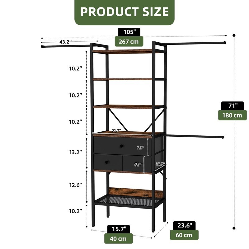 You may also like 144-Piece Mechanic Tool Set Socket Wrench Drive Kit Storage Case Durable Chrome 57.66 USD 60.7 USD Free shipping 5% off Pet Dog and Puppy Pee Training Pads Disposable Regular 22" x 22" 100 Count 29.32 USD 30.86 USD Free shipping 5% off Bake and Store Clear Food Storage Glassware Set 20-Piece Set Pantry Organizer US 44.41 USD 46.75 USD Free shipping 5% off Enameled Cast Iron Dutch Oven Oven Safe Induction Compatible Sauté Bake Roast US 58.99 USD 62.09 USD Free shipping 5% off Microwave Egg Cooker 4-in-1 Omelets Poached Eggs Easy Egg Bites Sandwich Patty 10.18 USD 10.72 USD Free shipping 5% off Emergency Food Kit 72-Hour 42 Servings Easy Prep 2667 Calories 5 Meal Varieties 26.14 USD 27.52 USD Free shipping 5% off Puppy Dry Dog Food for Large Dogs High Protein, Real Chicken, 16.5 lb Bag 37.05 USD 39.0 USD Free shipping 5% off 14-Piece Stainless Steel Knife Block Set Kitchen Knives Cooking Tools W/ Shears 35.59 USD 37.46 USD Free shipping 5% off Reclosable Food Storage Bags Ziplock Seal Writable Label Dispenser 100ct/Box 27.5 USD 28.95 USD Free shipping 5% off Hampton Plastic Mailbox Post Kit Durable Rust Resistant Weatherproof Mail System 68.88 USD 72.5 USD Free shipping 5% off Durable Mailbox USPS Approved Rust Resistant Large Plastic Curb Appeal 24.94 USD 26.25 USD Free shipping 5% off Entertainment Center 55" TVs Storage Organizer Open Shelves Indoor Living Room 223.25 USD 235.0 USD Free shipping 5% off Transform your bedroom into a well-organized space with the Closet System, a walk-in closet organizer system that fits 6-9 ft spaces. This system features 3 drawers for storing folded clothes and accessories, along with shelves and 3 expandable hanger rods to accommodate your hanging needs. The sturdy construction ensures durability, while the adjustable design allows for a customized fit in various closet spaces. Ideal for maximizing storage and keeping your wardrobe organized with ease. Specifications: Color: Black Material: Engineered Wood, Metal Item Dimensions: LxWxH 70. 8"/105" W x 15. 7" D x 71" H Item Weight: 43. 43 Pounds Package Included: 1 x Closet Organizer System Durable and Stylish Materials: Constructed with a sturdy white coated metal frame, wooden storage racks, and canvas drawers, this closet organizer adds a touch of elegance and order to your space while ensuring durability and functionality. Convenient Organization: The closet organizer features 7 tiers of storage racks and 3 fabric drawers, providing ample space for organizing outfits, accessories, and more. This setup allows for quick and easy access to your belongings, streamlining your daily routines. Space-Efficient Design: Elevate your storage capabilities with a closet system that includes 3 retractable hanger rods, expandable from 70. 8" to 105" in length, with a width of 15. 7" and height of 71". This adjustable system is designed to hold up to 550 pounds, making it suitable for walk-in closets ranging from 6 to 9 feet. Simple Assembly for Stability: The closet kit comes fully packed with detailed instructions for easy assembly. It includes adjustable feet and an anti-tip component, which contribute to the stability of the organizer, providing a safe and secure storage solution for your closet. Customizable to Your Space: With 3 telescopic rods that adjust from 23. 6 inches to 39. 4 inches, you can customize the fit of your closet organizer to match your specific space. Ensure you measure your closet dimensions before purchase to guarantee a perfect fit. You may also like Touchless Kitchen Sensor Trash Can Motion Sensor Garbage Bin Soft Close Feature 39.44 USD 41.52 USD Free shipping 5% off Stud 4.10/3.50-6 4-Ply Rated Lawn and Garden Tire No Wheel Robust studded tread 19.42 USD 20.44 USD Free shipping 5% off 12 Gal Max Pro Plastic Storage Tote 6 Pack Utility Stacking Heavy Duty Tote Gray 71.23 USD 74.98 USD Free shipping 5% off 48 Can Beverage Fridge Cooler Electrical Control Adjustable Shelves Glass Door 105.62 USD 111.18 USD Free shipping 5% off 9 Amp 7-1/4 Inch Compound Miter Saw with Laser Bevel Dust Bag Clamp Heavy Duty 106.84 USD 112.46 USD Free shipping 5% off 55 Quart High Performance Hard-sided Cooler Camping Outdoor 7-Day Ice Retention 129.44 USD 136.25 USD Free shipping 5% off 20X10-8 Lawn Garden Tire Heavy Duty Durable Non-Radial Chevron Tread A3 New 54.47 USD 57.34 USD Free shipping 5% off 20in High Velocity Drum Fan Wall Mount Sealed Motor 7000CFM Air Circulation Home 91.82 USD 96.65 USD Free shipping 5% off Extra Large Puppy Training Pads 300 Count Super Absorbent Disposable Potty Pads 71.24 USD 74.99 USD Free shipping 5% off Rechargeable Work Light with Rotating Head Spring-Loaded Clamp Mount 2000 Lumens 40.9 USD 43.05 USD Free shipping 5% off Copper Infused Memory Foam Mattress Topper Twin CertiPUR Cooling Support New 24.62 USD 25.92 USD Free shipping 5% off 5 Gallon Smart Control Dual Handle Gas Can Fuel Container Rugged for Emergency 28.72 USD 30.23 USD Free shipping 5% off