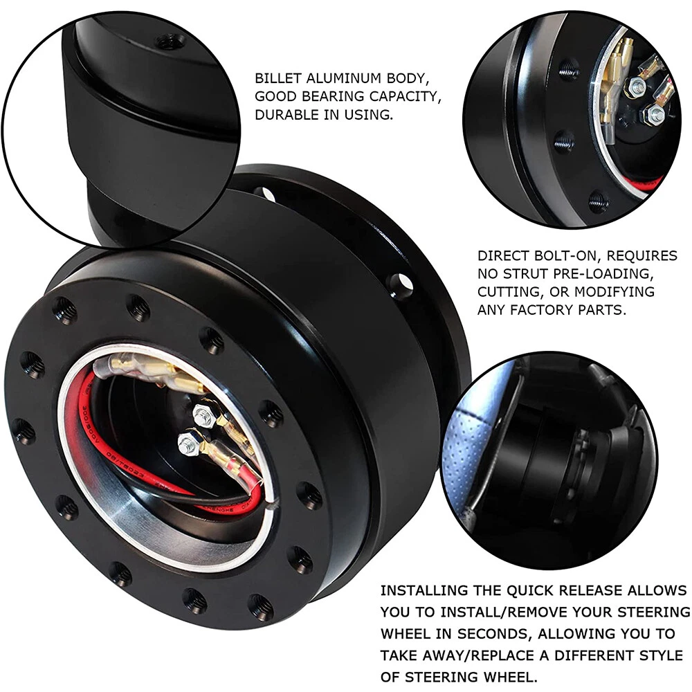 Specifications: Material: Aluminium Alloy Fitment: compatible with 6-hole steering wheel short hub kit, universal designed for many racing car Package Included: 1 x Quick Release Adapter 6 x Short Screws 6 x Long Screws 2 x Allen Keys Feature: 1. Aluminum alloy body, good carrying capacity, durable in using. 2. With 6 long screws and 6 short screws, it can meet various buckle requirements, and the ball-lock structure can achieve the best fit and usability. 3. Easy to operate, direct bolt-on, requires no strut pre-loading, cutting, or modifying any factory parts. Heavy Duty Car Steering Wheel Quick Release HUB Adapter Snap Off Boss Kit Black Specifications: Material: Aluminium Alloy Fitment: compatible with 6-hole steering wheel short hub kit, universal designed for many racing car Package Included: 1 x Quick Release Adapter 6 x Short Screws 6 x Long Screws 2 x Allen Keys Feature: 1. Aluminum alloy body, good carrying capacity, durable in using. 2. With 6 long screws and 6 short screws, it can meet various buckle requirements, and the ball-lock structure can achieve the best fit and usability. 3. Easy to operate, direct bolt-on, requires no strut pre-loading, cutting, or modifying any factory parts. 4. This alloy quick release kit is compatible with 6-hole steering wheel short hubs, universal designed for many racing car. Item Specifics Brand Unbranded Type Steering Wheel Boss Kit Items Included 1x Steering Wheel Boss Kit Features Quick Release/Easy Installnation model steering wheel quick release model1 quick release steering wheel kit Color Black Payment Paypal, Visa, and MasterCard are the accepted forms of payment. Please use the eBay checkout system when paying for your order. Paypal, Visa, and MasterCard are the accepted forms of payment. Please use the eBay checkout system when paying for your order. Shipping Product will be shipped within 2 business days after full payment is received and verified. Delivery time is about 2-8 business days to most of addresses. Returns How to send a return request: 1.We stand behind every buyer.Items can be returned for exchange or refund within 60 days. 2.Please contact us when you have any confusion of our item, we will solve the trouble for you as soon as possible. Contact Us Please contact us first via email or message for replacement, refund or technical problem caused by any reason. DESCRIPTION PAYMENT SHIPPING RETURN POLICY CONTACT US Heavy Duty Car Steering Wheel Quick Release HUB Adapter Snap Off Boss Kit Black Specifications: Material: Aluminium Alloy Fitment: compatible with 6-hole steering wheel short hub kit, universal designed for many racing car Package Included: 1 x Quick Release Adapter 6 x Short Screws 6 x Long Screws 2 x Allen Keys Feature: 1. Aluminum alloy body, good carrying capacity, durable in using. 2. With 6 long screws and 6 short screws, it can meet various buckle requirements, and the ball-lock structure can achieve the best fit and usability. 3. Easy to operate, direct bolt-on, requires no strut pre-loading, cutting, or modifying any factory parts. 4. This alloy quick release kit is compatible with 6-hole steering wheel short hubs, universal designed for many racing car. Payment Shipping Returns Contact Us Paypal, Visa, and MasterCard are the accepted forms of payment. Please use the eBay checkout system when paying for your order. Paypal, Visa, and MasterCard are the accepted forms of payment. Please use the eBay checkout system when paying for your order. Product will be shipped within 2 business days after full payment is received and verified. Delivery time is about 2-8 business days to most of addresses. How to send a return request: 1.We stand behind every buyer.Items can be returned for exchange or refund within 60 days. 2.Please contact us when you have any confusion of our item, we will solve the trouble for you as soon as possible. Please contact us first via email or message for replacement, refund or technical problem caused by any reason. All rights reserved. On Jan 9, 2025 at 03:12:51 PST, seller added the following information:
