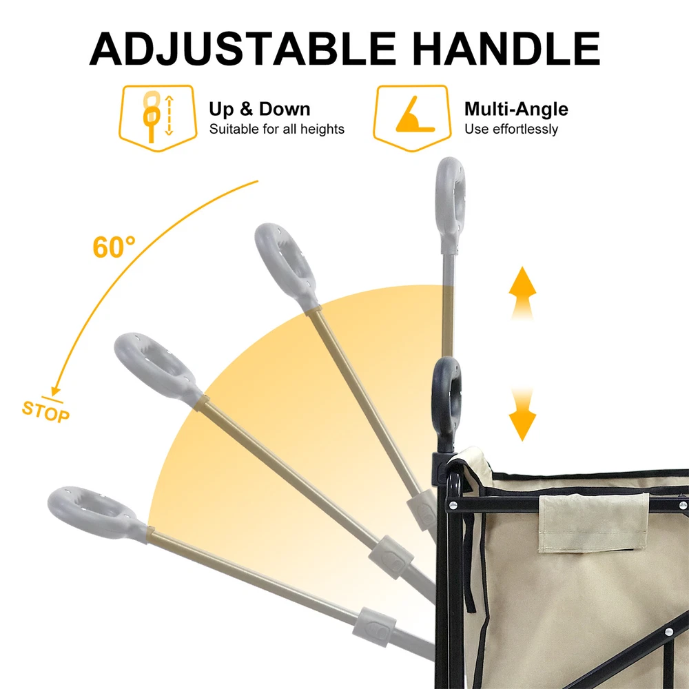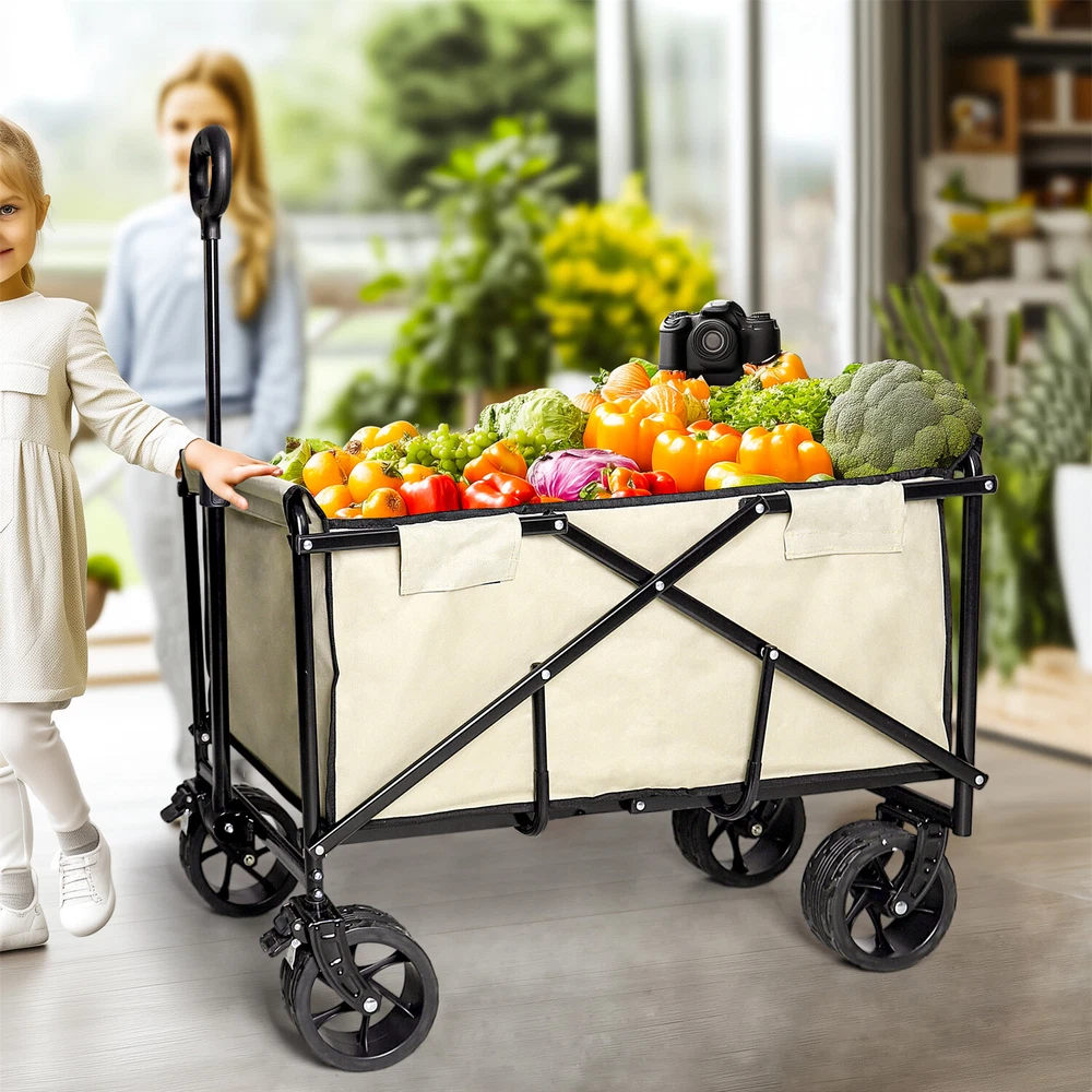 Heavy Duty Collapsible Wagon Cart w/ Wheel Camping Beach Cart for Sports Outdoor Heavy Duty Collapsible Wagon Cart w/ Wheel Camping Beach Cart for Sports Outdoor US SELLER, FAST SHIPPING! Features: Conveniently carry up to 440 lbs, making it suitable for carrying bulky items. Designed with all-terrain wheels and pull handle ensure easy maneuverability. Shock absorbing wheels, minimize jolts, roll smoothly on almost all the terrains. Large wheels ideal for soft sand, grass, gravel, uneven surfaces without getting stuck. 360 rotating wheels with locking brake, allowing for secure parking in any location. Equipped with wheels and brakes, enhance maneuverability, allows you park securely. Constructed from steel tube structure with powder coating for enhanced durability. Heavy duty iron frame construction assures durability, it won’t crack or break easily. Boasting a sturdy metal construction and 600D oxford cloth fabric for longevity use. Oxford fabric enhances durability, known for its excellent wear and tear resistance. The cart has an oxford canopy cover, effectively protects the items from rain, water. Cover envelops the entire structure for comprehensive protection against elements. High-strength steel combined with ABS plastic components, offers a solid foundation. With two extra side pockets design for holding all kinds of goodies, camping items. Easily foldable design, allowing for easy transport and storage in the car truck. Built with telescoping grip handle for effortless transport and comfortable pulling. Great for outdoor adventures, beach, camping trips, groceries, garden, other activities. Specifications: Type: Garden Cart Trolley Style: Contemporary Features: Foldable, Heavy Duty Materials: 70% Iron Pipe +20% Oxford Cloth +10% ABS Color: Light khaki & black Net Weight: 9.2kg/ 20.28 lbs Load Capacity: 200kg/ 440.92 lbs Product Dimension: L * W * H total 80.5x50x100cm/ 31.69x19.69x39.37 inch Interior Space: L * W * H 74x46x36cm/ 29.13x18.11x14.17 inch Package Included: 1 x Camping Wagon Cart 1 x Instruction Guide Payment Delivery details Terms of sales About us Contact us Payment 1.We accept payment by credit card, paypal, payoneer. 2.Upon on payment, please confirm your shipping address. Delivery details 1. All of our products are brand new. 2. All Mirror have passed drop test over 1.2m and quality inspection, ensures the mirror was shipped in good condition before shipment. Terms of sales 1.We are located in NJ, CA ,all the items will be shipped via USPS, UPS Ground, Fedex Ground with tracking number provided. 2. We cannot ship to Alaska, Hawaii & Puerto Rico Addresses. About us About Wisfor At Wisfor,we provide high quality LED bathroom mirrors,focus on the development and innovation of mirrorsand our company has over 10 years backed with professional service experience, and exports products to more than 130 countries around the world. There are severial series of mirrors, Bathroom Mirror with Light, RGB Frontlit &Backlit LED Mirror, Metal Frame Mirror,Decorative Wall Mirror,ect. And many shapes, rectangle, round, oval, and so on.We always focus on the development and innovation of high-quality LED bathroom vanity mirror, to meet your demand and to elevate personality and design tastes. Contact us 1. If you are satisfied with the transaction could you pls leave us a positive feedback 5-star that we will be appreciated. 2. Normally your email would get replied within 24 hours (Business Hours) and your issue will be followed up carefully till we 've reached an agreement. 3. If you have any questions or suggestions before opening a case or dispute ,or leaving any neutral or negative feedback, please contact us first,we will try our best to resolve your problem. Brand Wisfor MPN NMCJNMV85G Item Length 80.5cm Item Width 50cm Item Height 63cm Weight Capacity 200 KG Colour Light khaki & black Features Heavy Duty, Foldable, Heavy Duty Handles, Collapsible, Lightweight, Easy Assembly, Wheeled Material Steel, Fabric Type Trolley Cart Item Weight 9.2 kg Capacity 200KG Model Collapsable Manufacturer Warranty 1 Year Number of Items in Set 1 Size Large