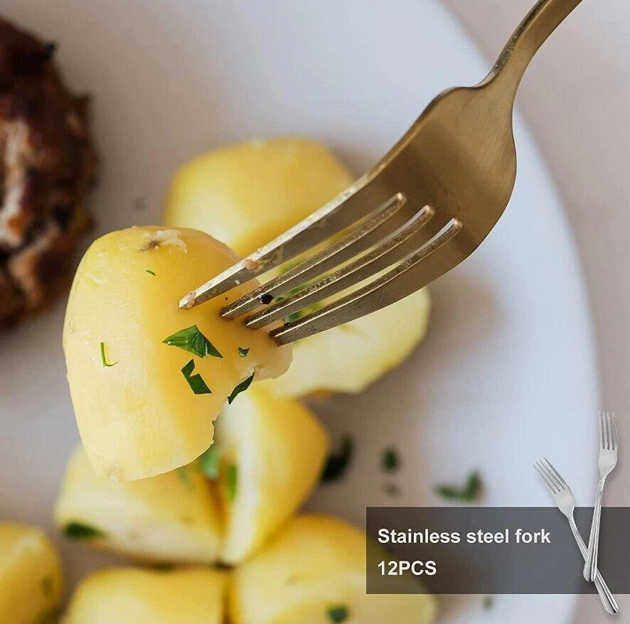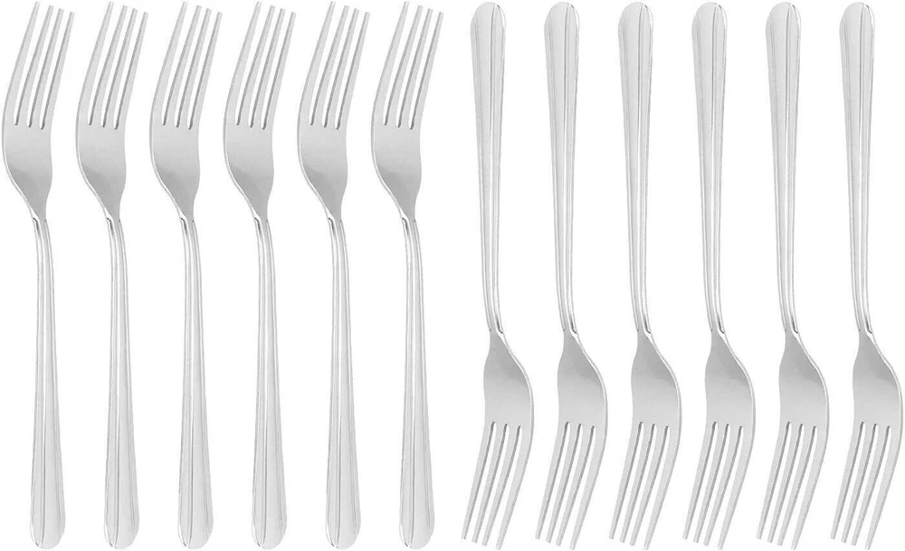CONTACT US DIRECTLY FOR FREE & PREPAID RETURNS Heavy Duty Dinner Forks 18/0 Stainless Steel Salad Table Fork Set of 12 Flatware Heavy Duty Dinner Forks 18/0 Stainless Steel Salad Table Fork Set of 12 Flatware - The Heavyweight Dominion design supper fork set is great for ordinary use, ideal for salads, pasta, steak and other foods. - The cutlery curve is ergonomically designed, simple to designed food, more imaginative and safe. - 18-0 heavyweight designed, consumption safe, and no bowing Smooth carved line design, agreeable to contact. - Set includes: 12 dinner forks - Handle: 4.5"L x 0.63"W. REVIEWS The product came very well packaged. I'm very happy. thank you for everything. Seller strongly recommended. This is great! I definitely recommend! Product looks amazing Delivery was fast. Excellent seller, great communication. I advise everyone