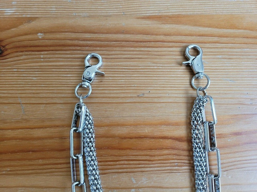 Double Chain Mesh & Link Heavy Duty Metal Wallet Chain Biker Trucker Key Chain Heavy Duty Metal Silver Mesh Popcorn Chain & Large Link Chain Mesh Chain Thickness: 0.40" (10mm) Large Link Chain Thickness: 0.45" (11mm) Length: 22" Weight: 5oz. We will ship from Los Angeles You can also visit our Ebay Store http://stores.ebay.com/MDream-Store/ Check out my other items !
