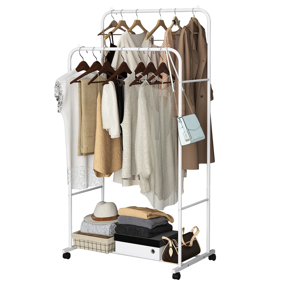 Heavy Duty Clothing Garment Rack Rolling Clothes Organizer Double Rails Hanging