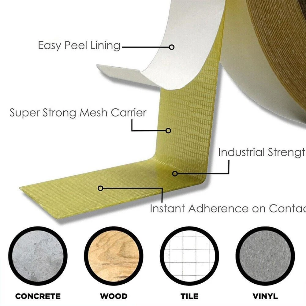 This double-sided tape is a game-changer! Super strong hold for carpets and mats, yet removes cleanly with no sticky mess. The gauze material is durable, and the adhesive works perfectly on floors. Great for hotels, exhibitions, or home use—super reliable and leaves surfaces residue-free. Highly recommend!
