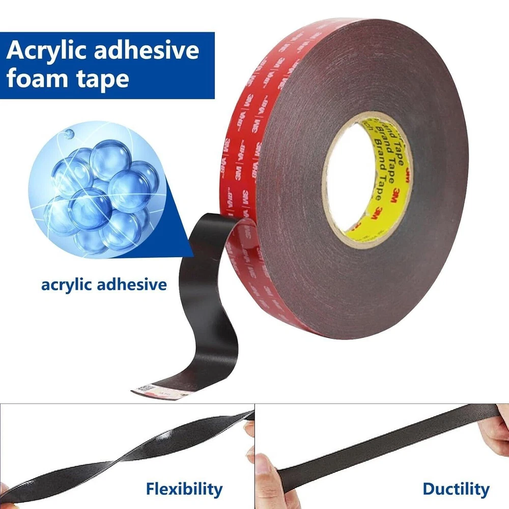 CONTACT US DIRECTLY FOR FREE & PREPAID RETURNS Heavy Duty Double Sided Foam Tape - 1/2" X 15.6ft, 3m Vhb, Home Office Car 【High quality heavy duty double sided tape】- Proven Reliability from VHB Mounting Tapes. Total 15.6FT Length, 1/2 Inch Thickness:0.04Inch/1.1mm. With strength of 90 pounds per inch (longitudinal). High strength and durability. The stickiness will gradually increase over time and display perfectly after 24 hours. 【Super Heavy Duty Adhesive Tape】 Strong double sided mounting tape, it is ideal for mounting large and heavy tools, greenhouse tarp, teaching materials, posters, and picture frames. 【Multipurpose Tape】 - fits for many occasions, such as signs, nameplates, wall hooks, scrapbooking, cards making, carpet fixing, wall decor like doors and windows decoration for home, school and office, automotive displays and personalized cars, etc. 【Strong ductility】 Unlike similar products on the market, this wall tape is highly resilient to high temperatures, being UV and temperature stable in all kinds of environments. The acrylic bond is waterproof and withstands outdoor heat or cold for many years. 【Easy to Put into Use】– This foam tape is easy to install, tear off the tape and stick it to the surface of the object. it bonds quickly and securely when it’s fully compressed. REVIEWS The product came very well packaged. I'm very happy. thank you for everything. Seller strongly recommended. This is great! I definitely recommend! Product looks amazing Delivery was fast. Excellent seller, great communication. I advise everyone