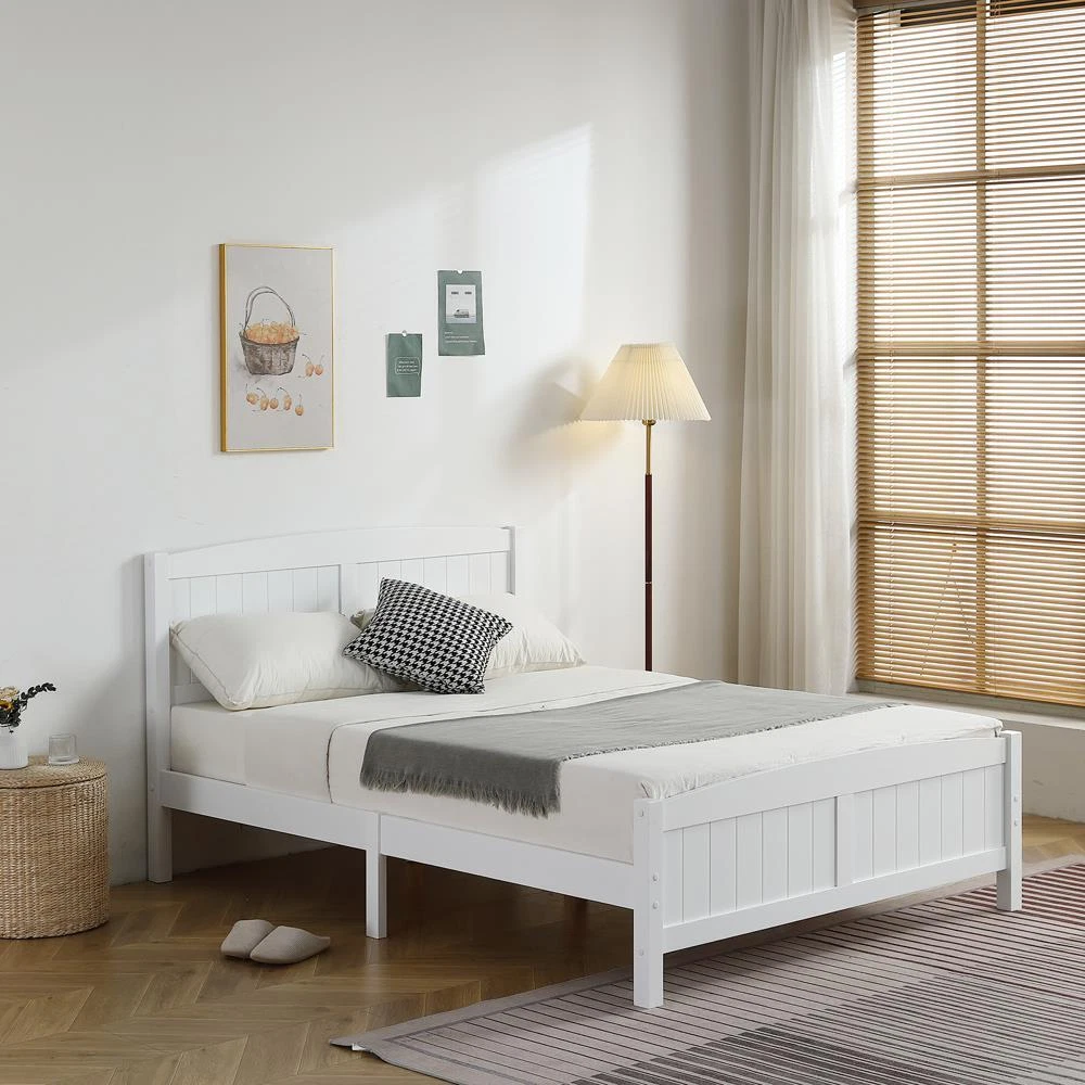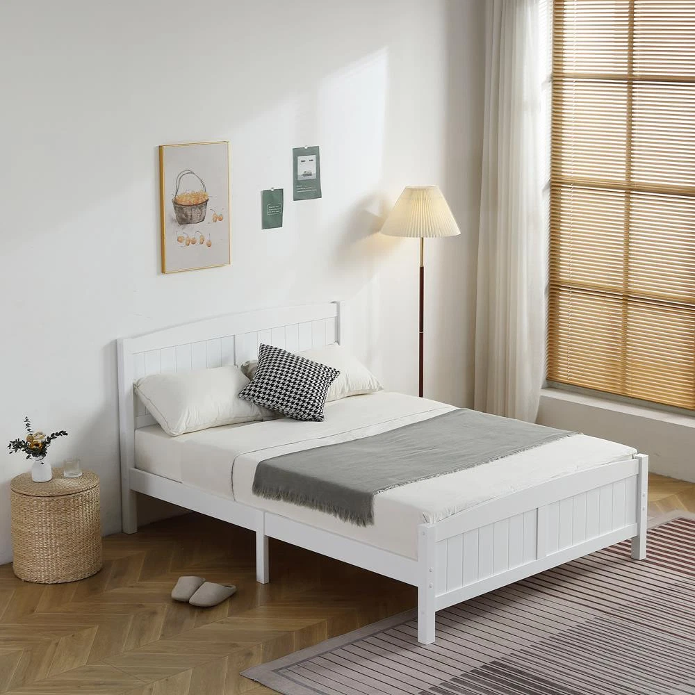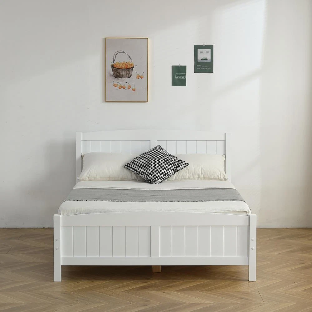 Features: Assembly Instructions, Slatted Foundation gtin13: Does not apply Color: White / Gray UPC: Does not apply Brand: FCH Room: Bedroom Compatible Mattress Size: Full Type: Bed Frame Frame Material: Solid Wood